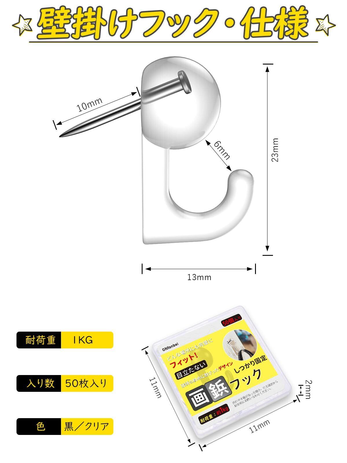 ピンフック 50枚入り 耐荷重1KG 画鋲ふっく 穴の目立たない 壁掛けフック DIY 小物掛け 石膏ボード・ベニヤ・木用フック クリア