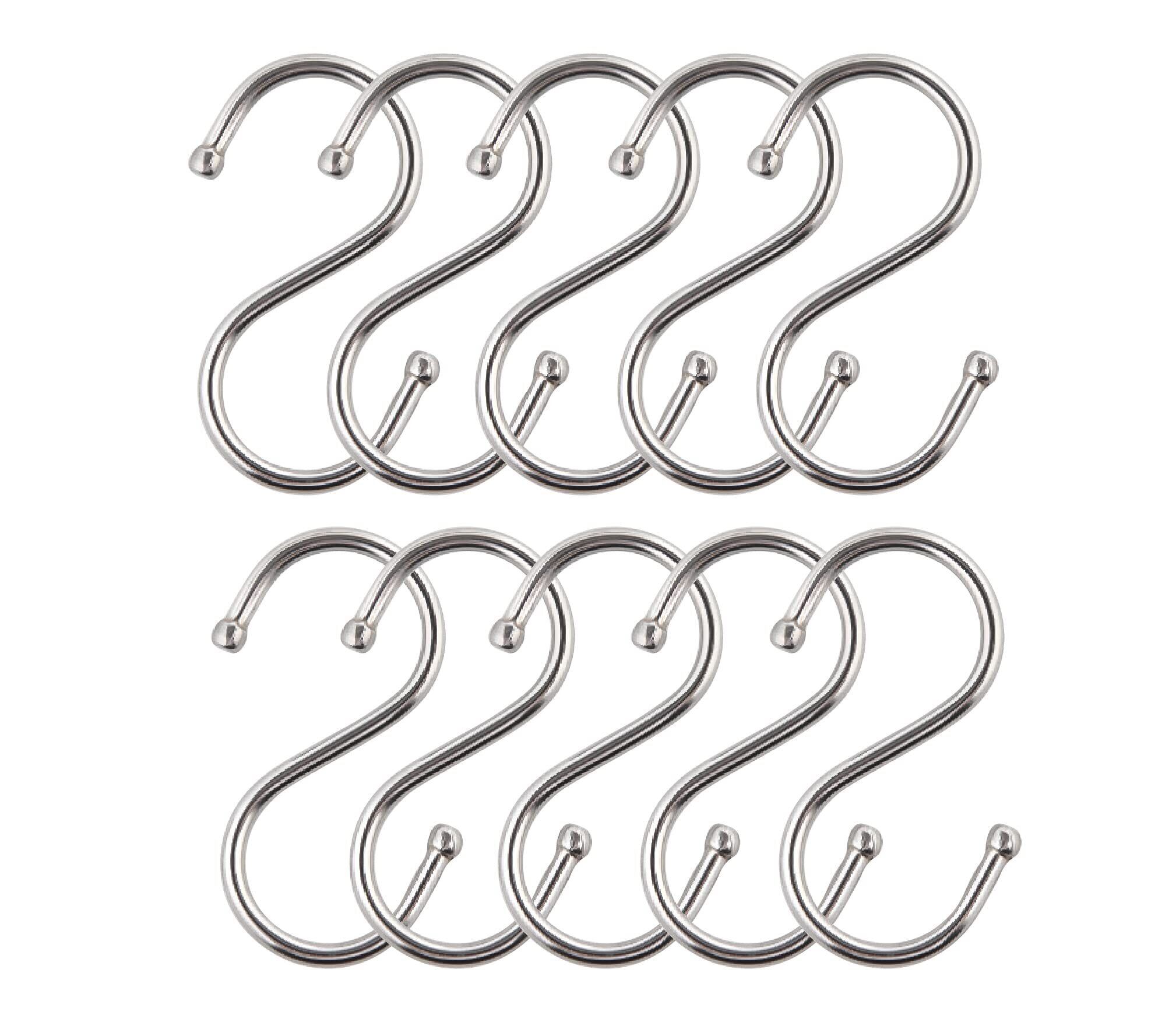 ステンレス材質のSフックです。キッチンやインテリア、様々な場所で使いやすいSフックです。ワイヤーネットやつっぱり棒などSフックを使って様々な収納ができます。サビにくいので屋外でも使用できます。