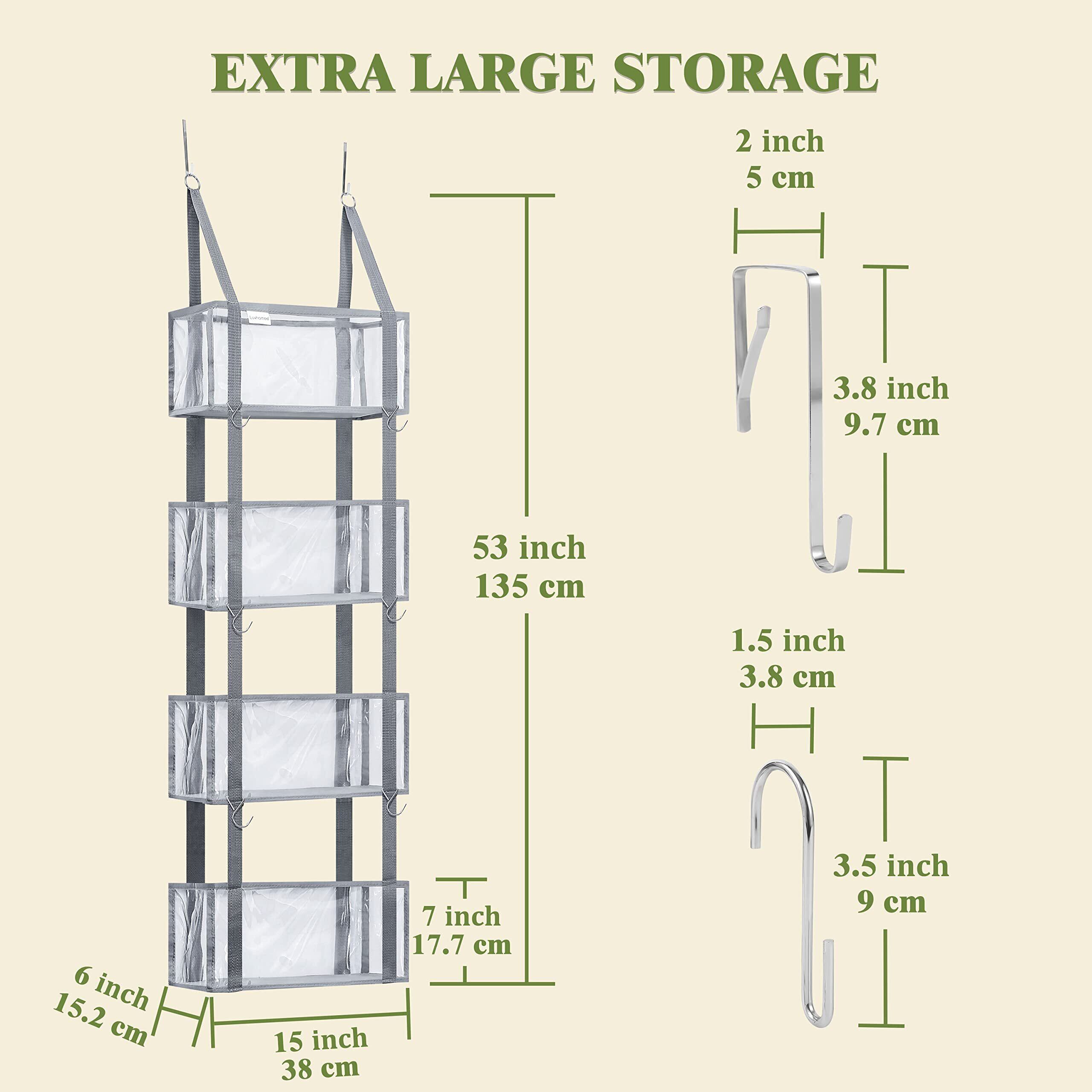 クローゼット 収納 ウォールポケット ドア吊り下げ収納 ドアフック ドア掛け収納式ポケット 壁掛け収納ポケット 下着 書類/漫画など おもちゃ カバン ぬいぐるみ タオルの収納 バッグ収納 ロッカー カバン収納 4段の大容量 透明窓付き 耐用 小物収納 4xフック付き 取り付け簡単