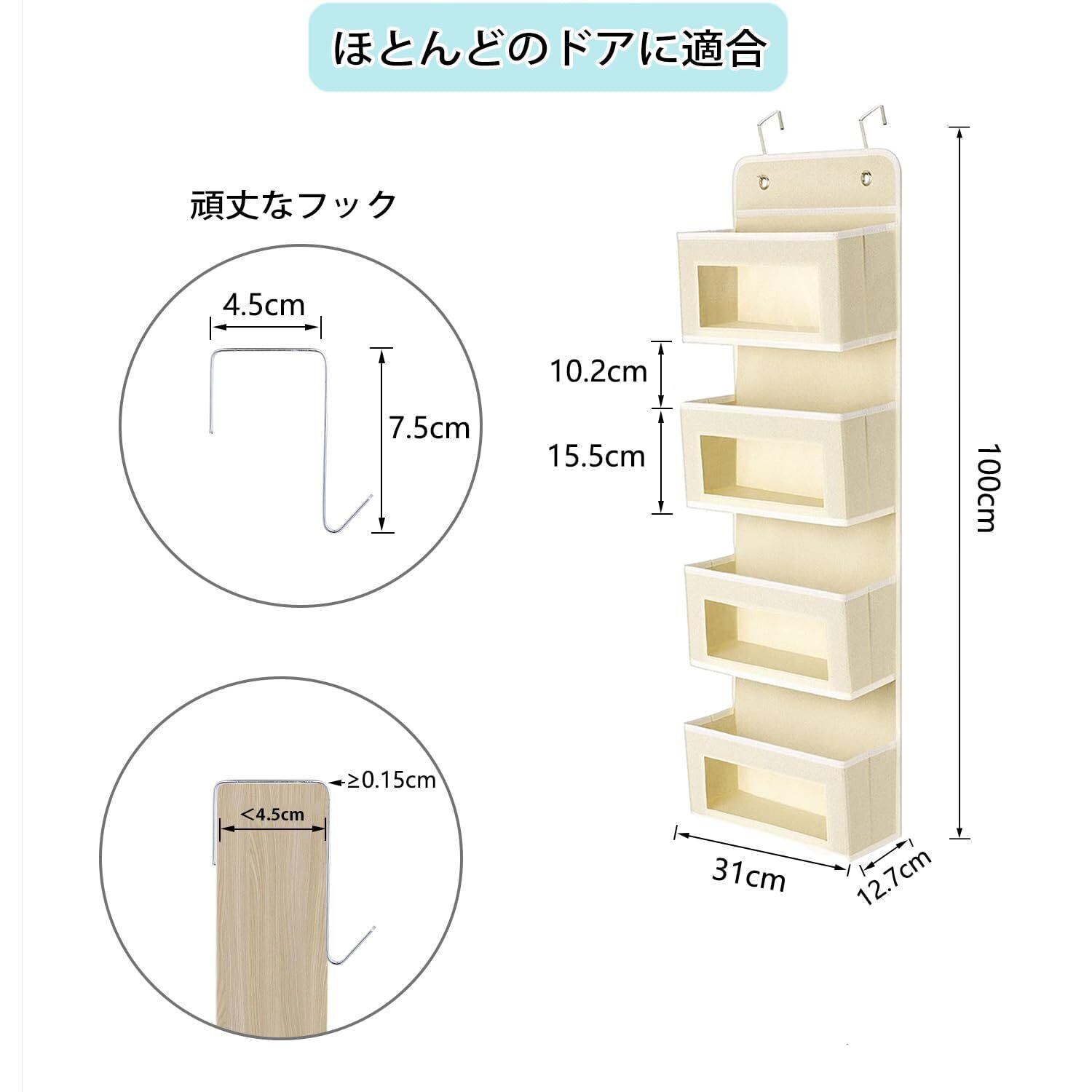TATIU ウォールポケット 壁掛け収納 4段 ドア掛け 収納ポケット 壁掛け 吊り下げ収納ポケット 透明窓付き 大容量 不織布 頑丈 おむつ タオル 化粧品 おもちゃ リモコン 収納 フック2個付き (ベージュ)