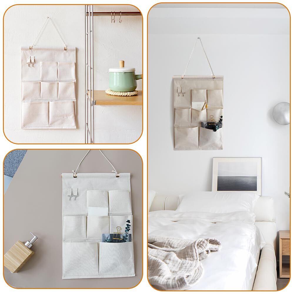 CHANGJIQ ウォールポケット 壁掛け収納式 3段 7ポケット 吊り下げ ドアハンガーポケット ドア掛け 寝室 玄関 小物入れ 新聞紙 雑誌 手紙 鍵などを掛ける 折りたたみ 収納 整理 分類 インテリア 粘着フック2個付き