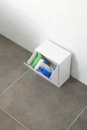 置いても、壁に付けても使える、ゴミを隠して見せない清潔でスマートなトイレポット&収納ケース! フラップ式だから片手で簡単に開閉できます。