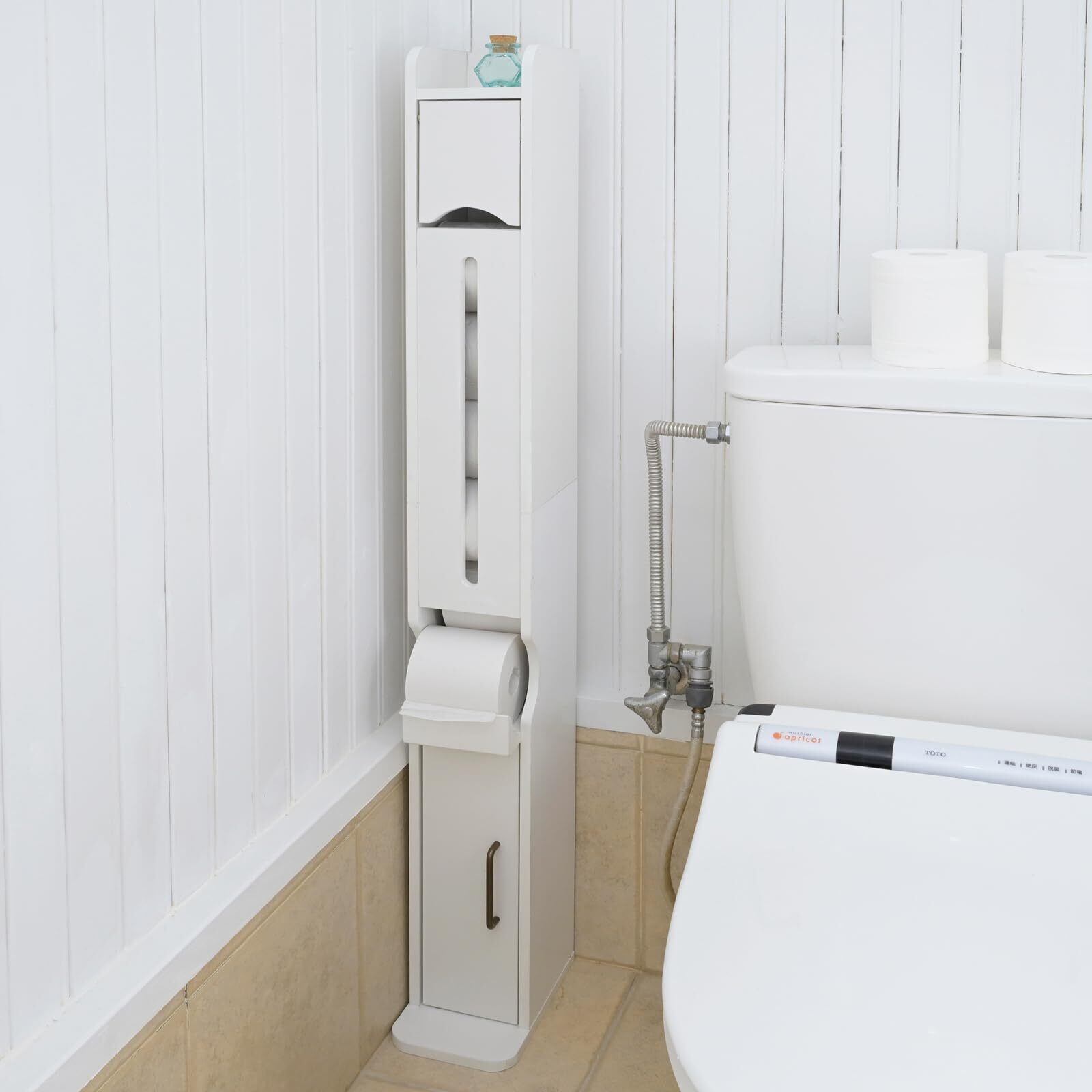 山善(YAMAZEN) トイレラックトイレットペーパー 収納 スリム 棚 ラック トイレ 幅15.5×奥行21×高さ120.5cm 組立品 ホワイト 木目調 FTR-S(WH)