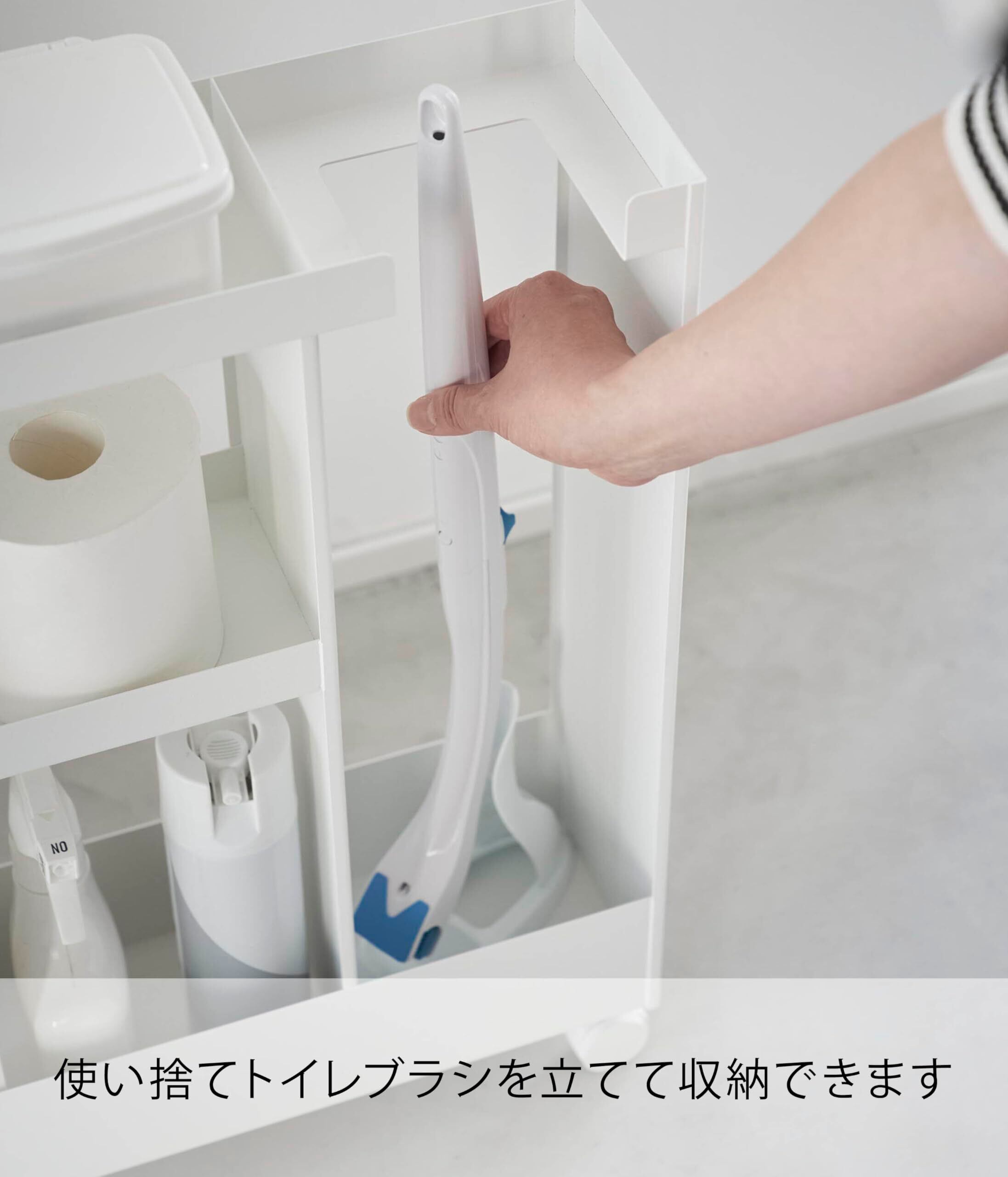 高さのあるトイレブラシやトイレ用品を一括収納。
