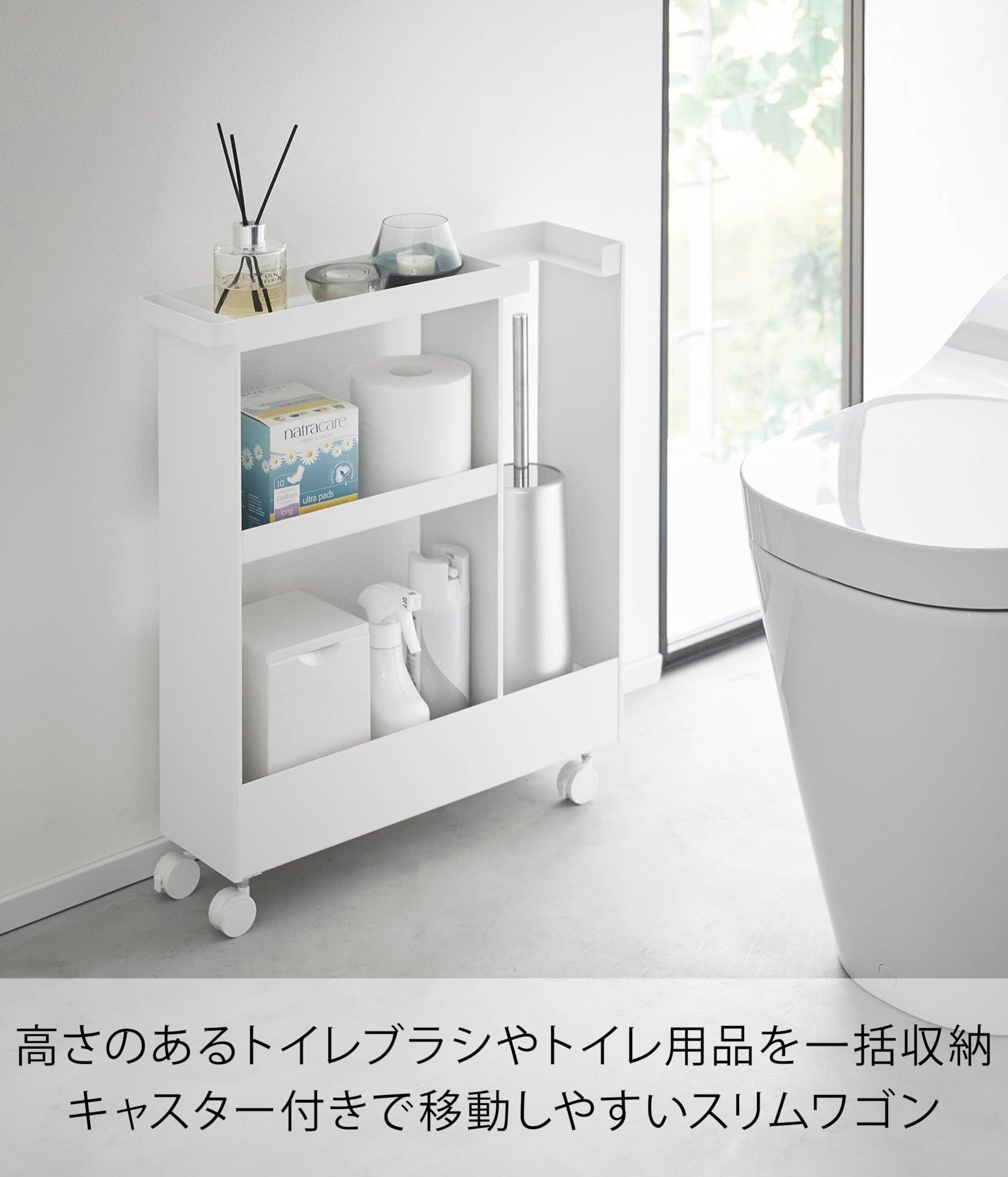 山崎実業(Yamazaki) 【完成品 キャスターのみ取り付け】 キャスター付き トイレ スリムワゴン 2段 ホワイト W13×D47.8×H55.5cm(キャスター含む) タワー tower トイレ収納 トイレラック 1802