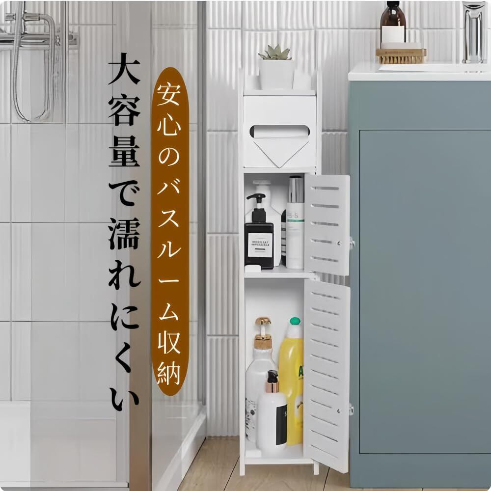 隙間収納、トイレ収納ラック、隙間収納ラック、玄関収納ラック、トイレットペーパーストッカースリム、防水 扉付き 棚、コーナーラック サニタリー ラック、トイレ収納棚、トイレ/玄関/洗面所/寝室/書斎/リビングルームなどの隙間に、小さなトイレに適用