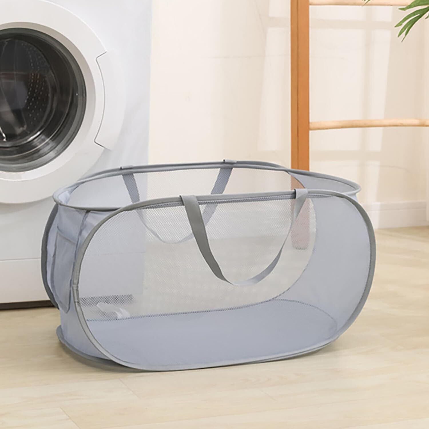 洗濯カゴ オシャレ 折りたたみ ランドリーバスケット おしゃれ メッシュ 自立 ランドリーバッグ ランドリーボックス 折りたためる バスケット コンパクト 軽量 横型 洗濯かご 洗濯籠 洗濯物入れ 脱衣カゴ 持ち手付き 省スペース 旅行 洗濯 グレー