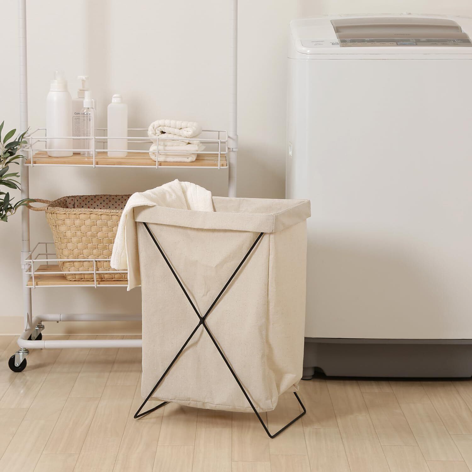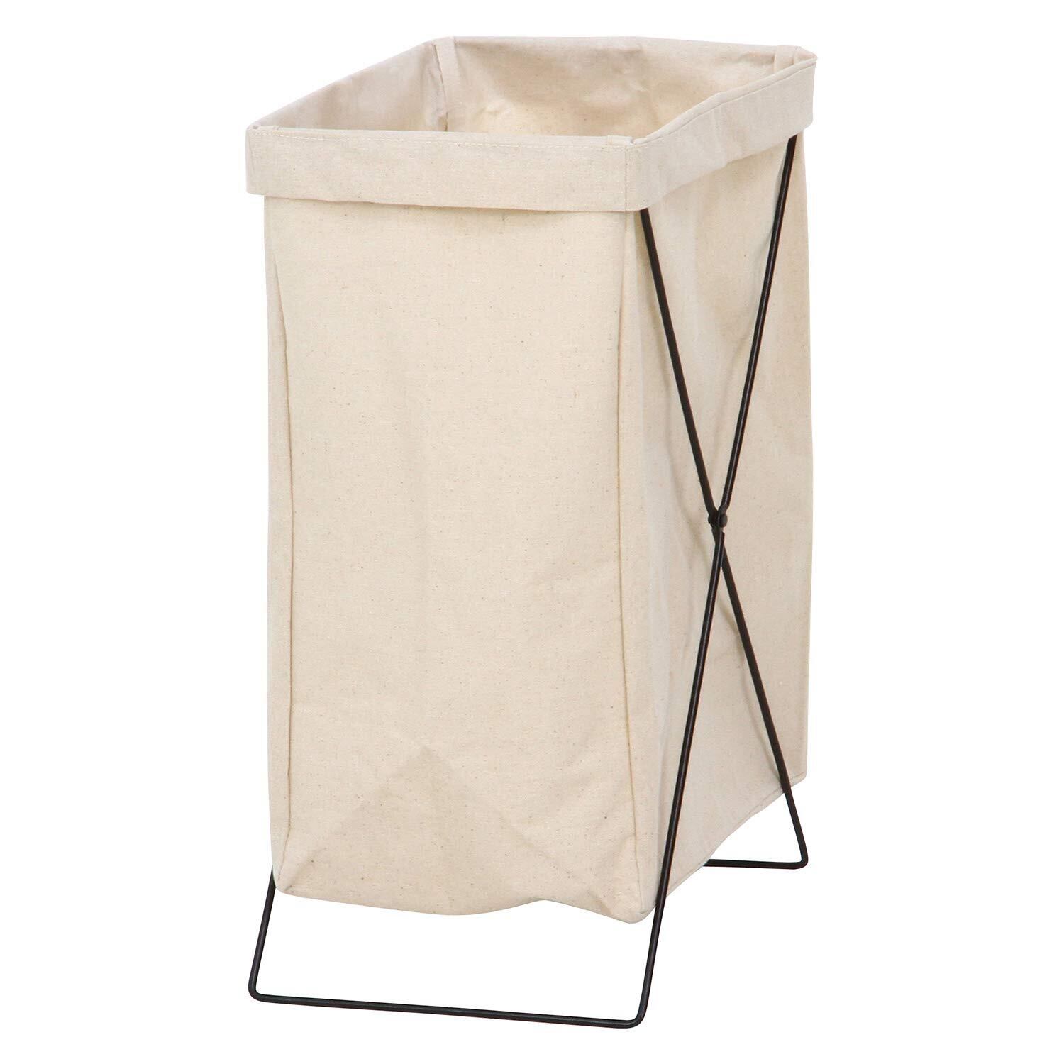 不二貿易(Fujiboeki) ランドリーバスケット スリム 幅24×奥行35×高さ52cm アイボリー 洗濯カゴ 折りたたみ ゴミ箱 キャンプ用 おもちゃ収納 内側撥水加工 31509