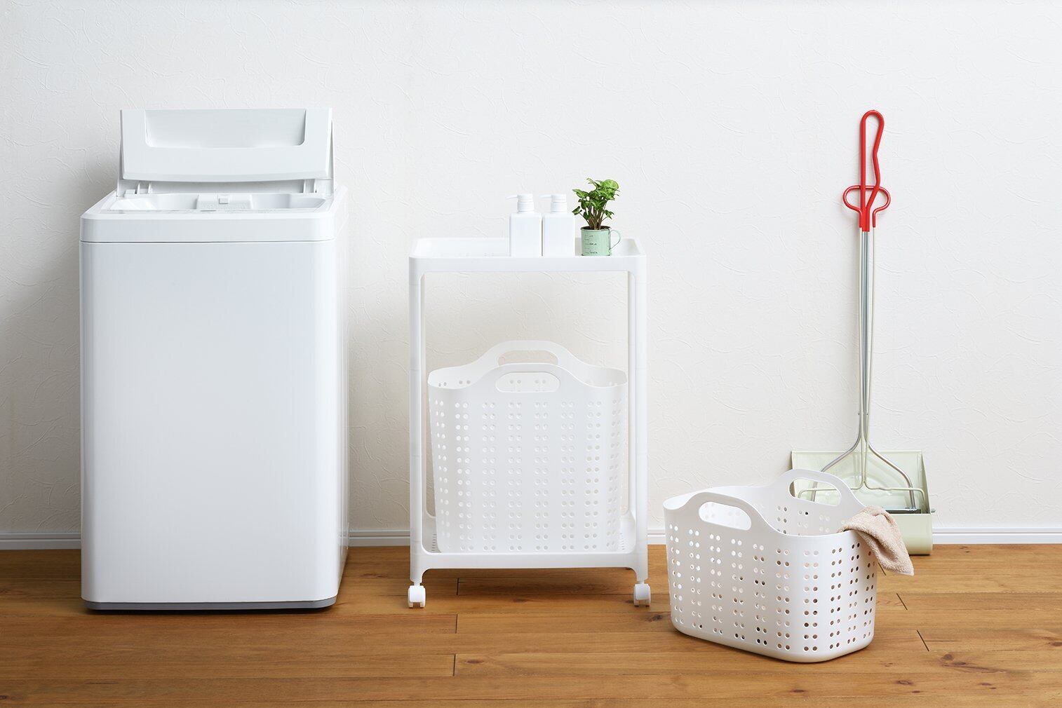 サンカ サンバッサ やわらか素材のソフトバスケット スリムなかたちですっきり収納 M ホワイト ドット穴が小さく衣類が傷つきにくい 軽量 大型 大容量 通気性 片手で持ち運び プラスチック (幅42×奥行28×高さ30.5cm) 簡単お手入れ 清潔 ランドリー 洗濯かご 銭湯 サウナ おしゃれ 日本製 SANKA VOB-MWH