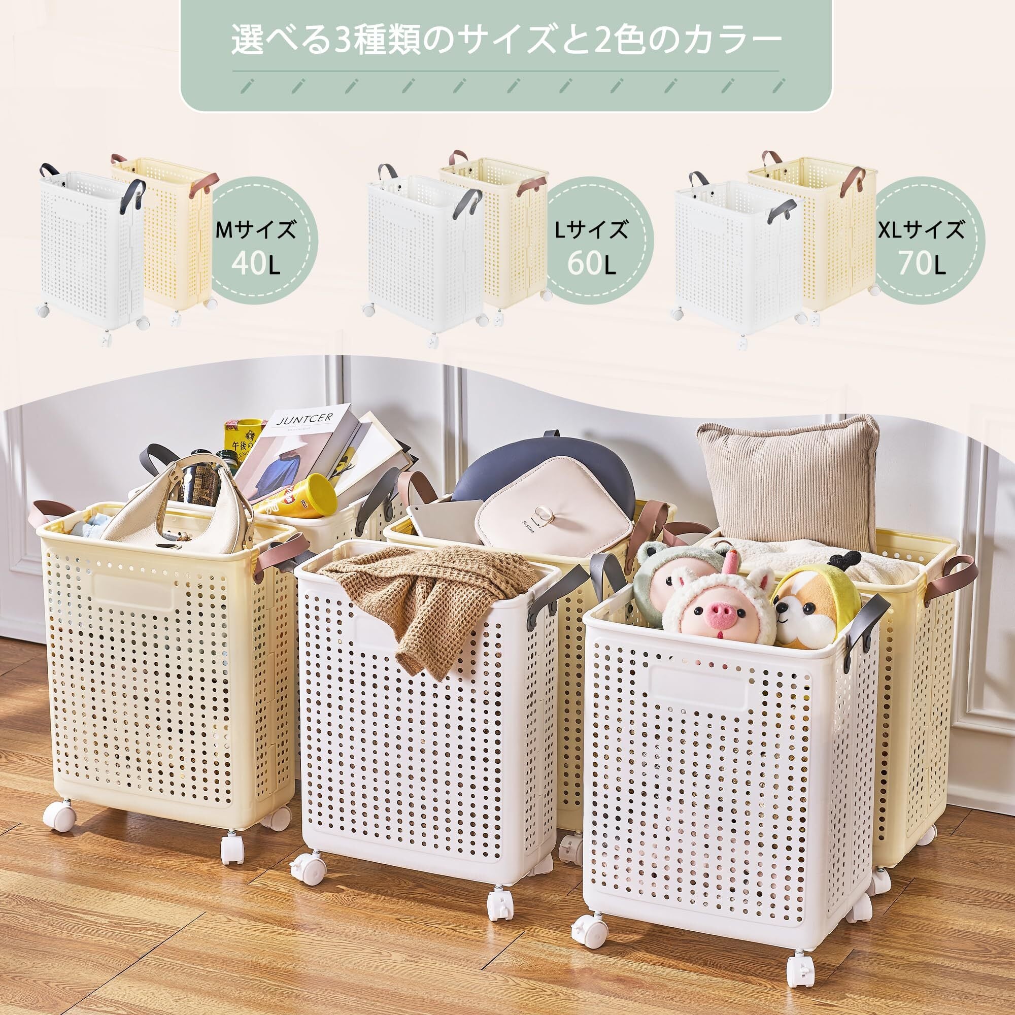 美しさと実用性を兼ね備えた、スマートなランドリーバスケット。折りたたみ収納&静音キャスターで快適な暮らしへ。