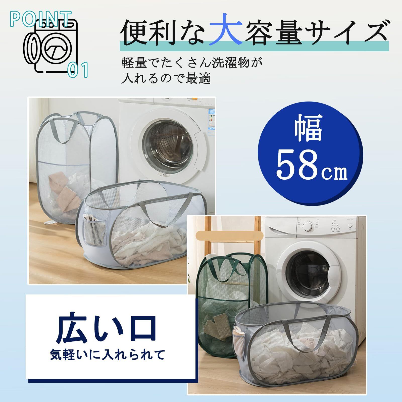 【耐久性UPの洗濯籠素材】 弾力性洗濯籠は、高品質な素材で作られており、長持ちし、頑丈で耐久性があります。強化されたポポリエステル素材と補強されたハンドルを備えているため、重い洗濯物や頻繁な使用にも安心してできます。長期間の使用でも破損の心配はありません。