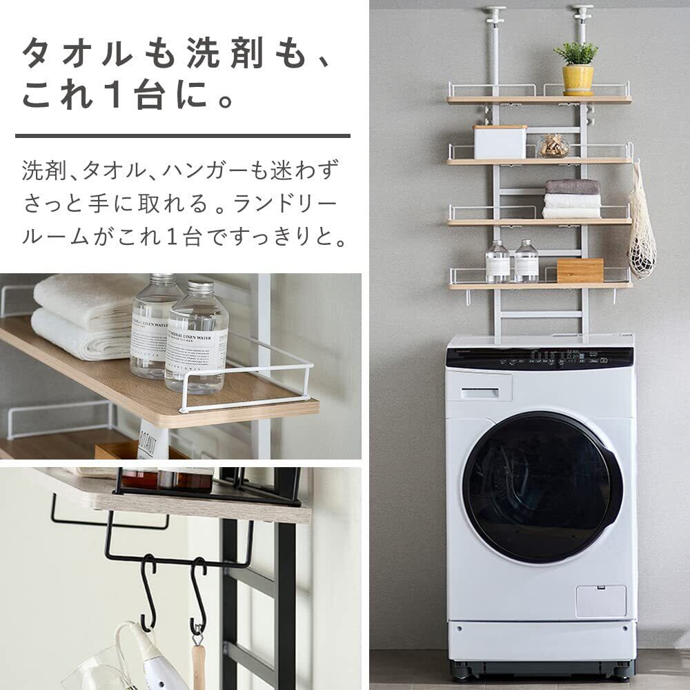 アイリスオーヤマ ランドリーラック 洗濯機ラック 突っ張りスタイル 縦型&ドラム式に対応 ホワイト デッドスペースを賢くおしゃれに活用 収納棚 隙間収納 棚4段でたっぷり収納 可動棚は好みの高さで調整可能 幅約60×奥行約27.5×高さ約197.5~264.5 TLR-4