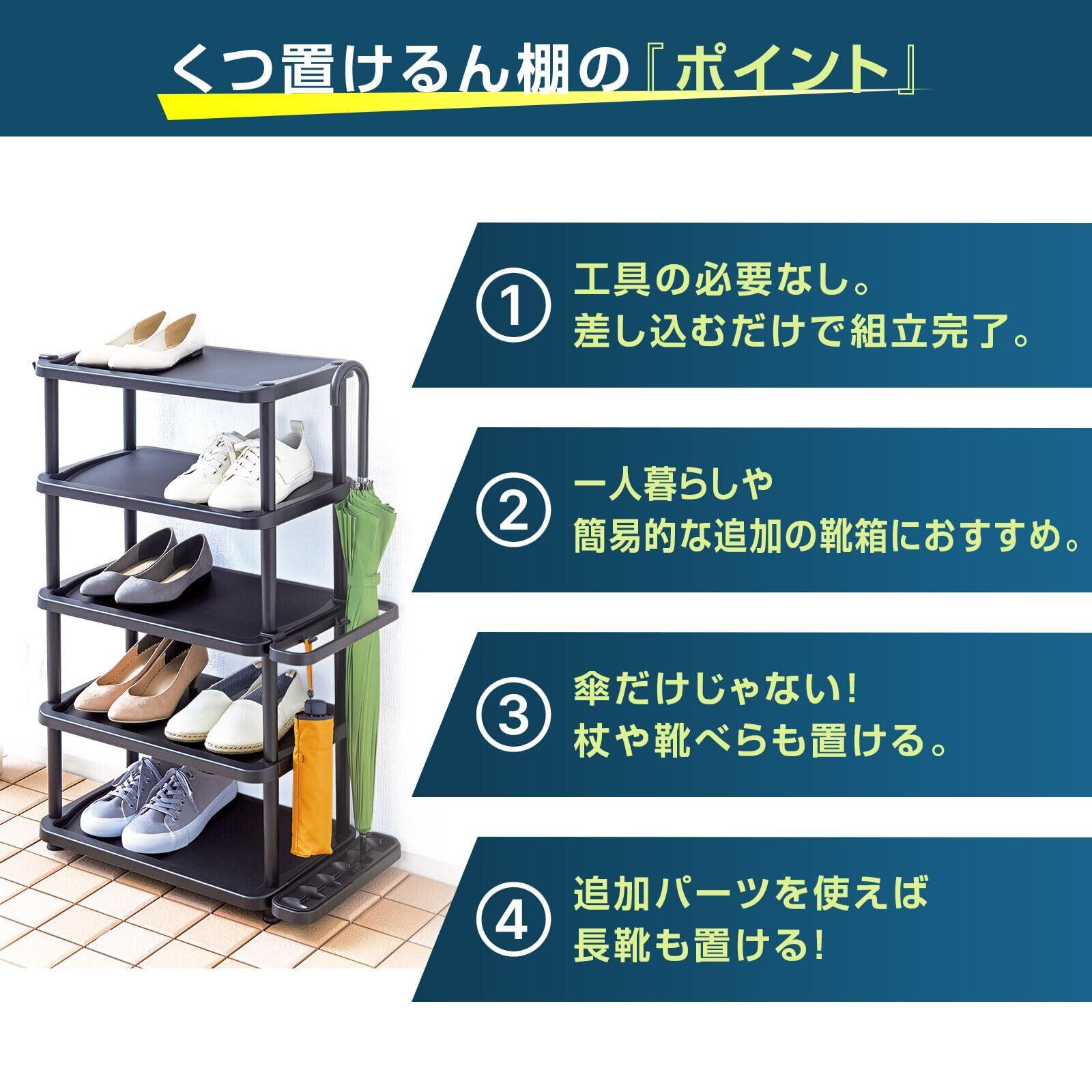 天馬 組立が簡単で玄関の省スペースを有効活用できるシューズラック くつ置けるん棚 5段 傘も一緒に収納できるスリム靴箱 シューズボックス 靴棚 【簡単組立】【幅36×奥行31×高さ85cm】