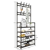 JIHYECOU シューズラック フック付き 靴棚 下駄箱 省スペース スリム 多機能 コートラック 棚 靴収納 大容量 カバンかけ 帽子掛け 多目的 靴だな 玄関 小物 収納 (5段 幅60cm ブラック)