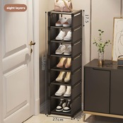 【省スペース設計・縦長スリムでどこでもスッキリ収納】幅27×奥行26cmという非常にコンパクトな設計で、狭い玄関やちょっとした隙間にも無理なくフィットします。高さ124cmの縦型8段構造により、最大で8足以上の靴を省スペースで収納できるため、ご家庭の玄関や廊下にも圧迫感なくスッキリと設置が可能です。見た目もスリムでスタイリッシュなので、限られたスペースを有効活用しつつ、生活感を抑えた美しい収納空間を演出します。