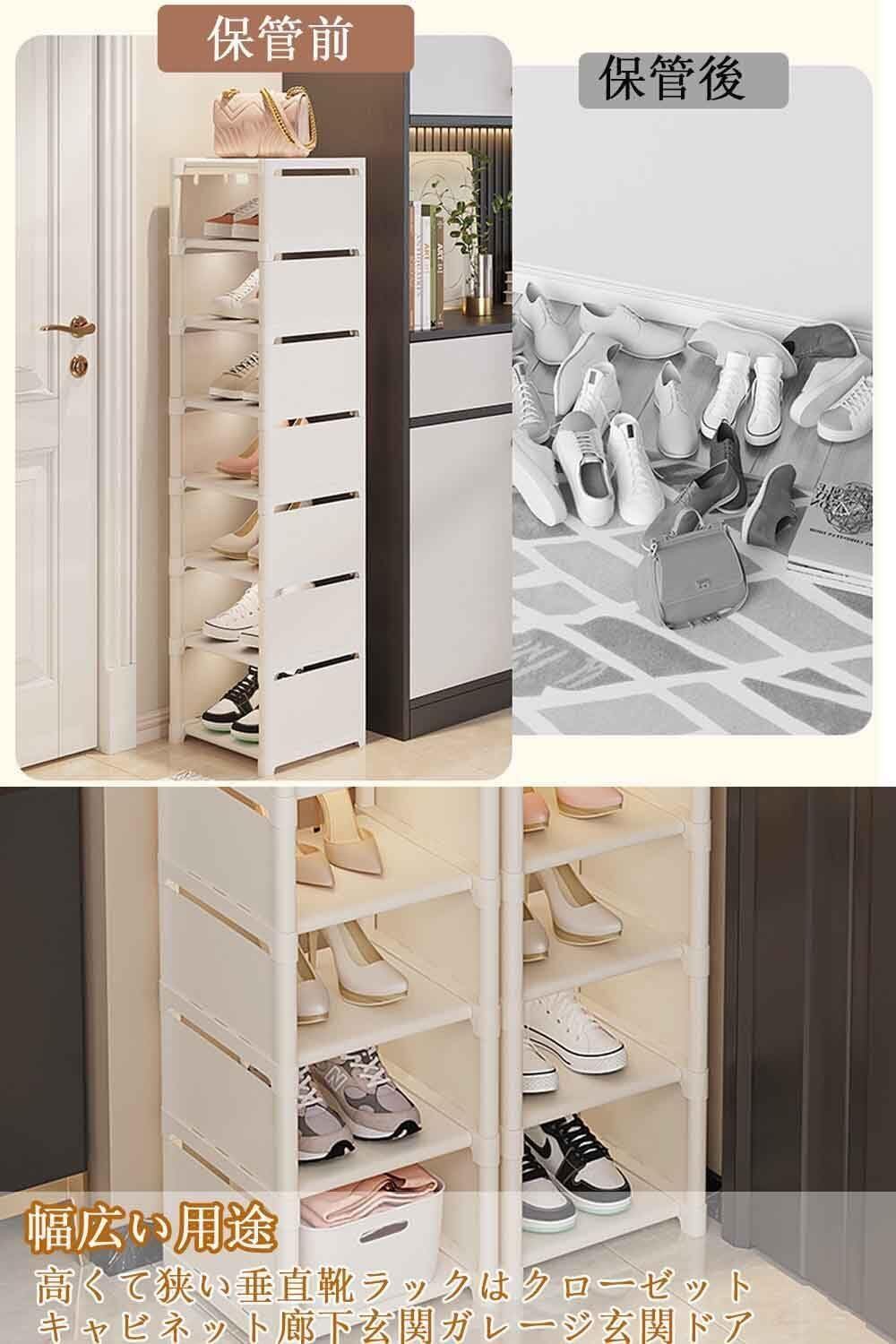 【LONGRUI公式】シューズラック 省スペース 靴収納ラック 不織布 仕切り 大容量 角 靴 収納 耐久性 おしゃれ スリム シューズボックス つっぱり 靴収納ボックス コンパクト 組み立て式 収納 下駄箱 安定 軽量 靴棚 狭い玄関 縦長 靴箱 スリム 狭い 玄関収納 長靴 ブーツ スニーカー 扉 壁 (ホワイト8段)