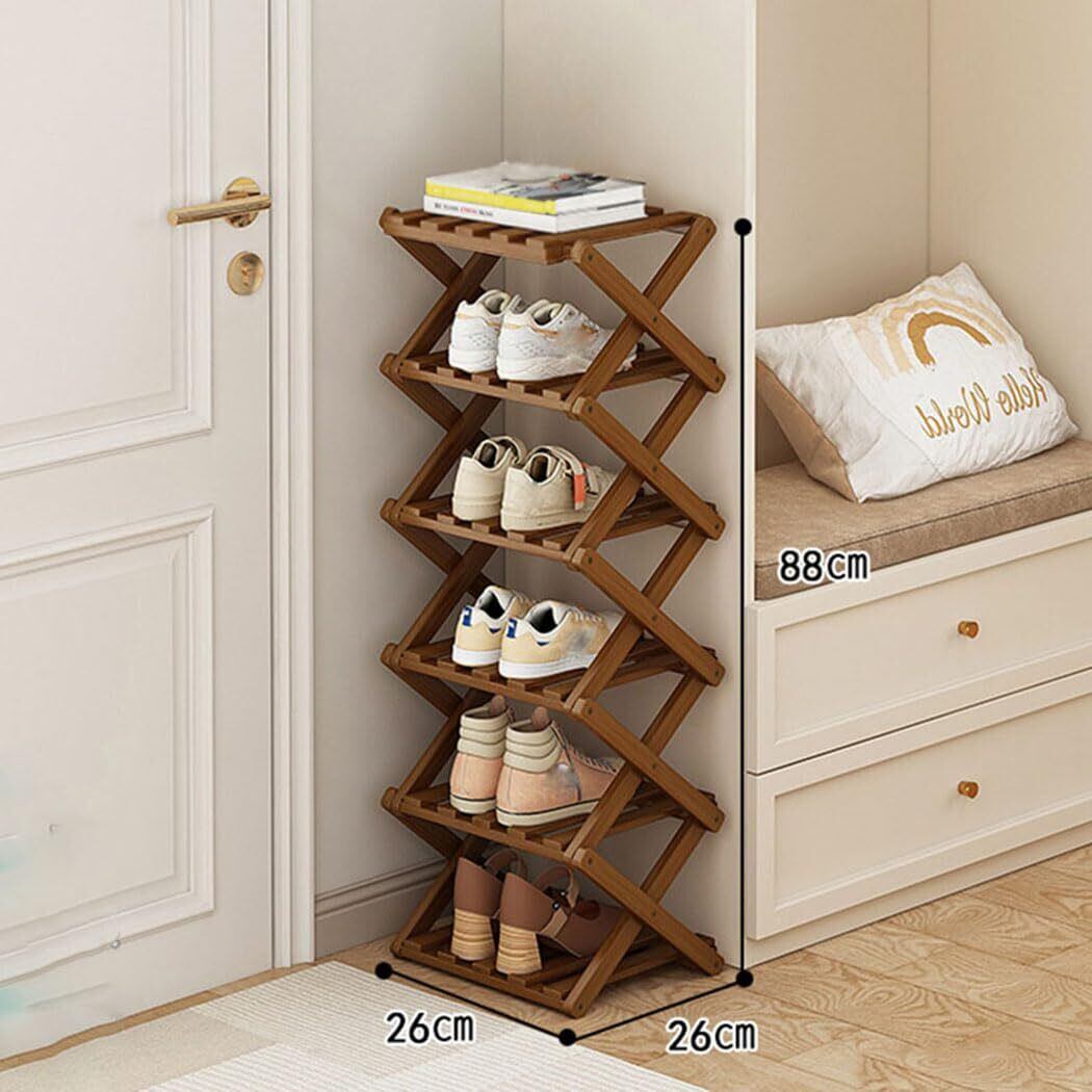 Yeziner シューズラック 玄関 スリム 靴棚 折りたたみ可能 竹製 木目調 シューズ ラック スリッパ 収納棚 省スペース コンパクト おしゃれ すき間 幅26cm 奥行26cm ひとり暮らし (茶色6段)