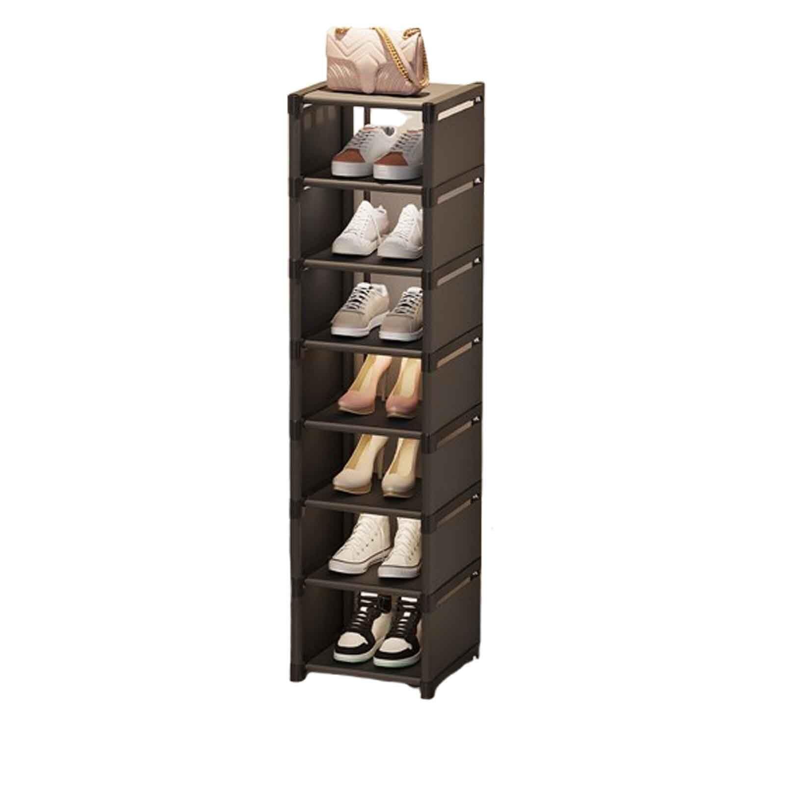 シューズラック 省スペース 靴収納ラック 不織布 仕切り 大容量 角 靴 収納 耐久性 おしゃれ スリム シューズボックス つっぱり 靴収納ボックス コンパクト 組み立て式 収納 下駄箱 安定 軽量 靴棚 狭い玄関 縦長 靴箱 スリム 狭い 玄関収納 長靴 ブーツ スニーカー 扉 壁 (黒, 8層:27×26×124cm) [並行輸入品]