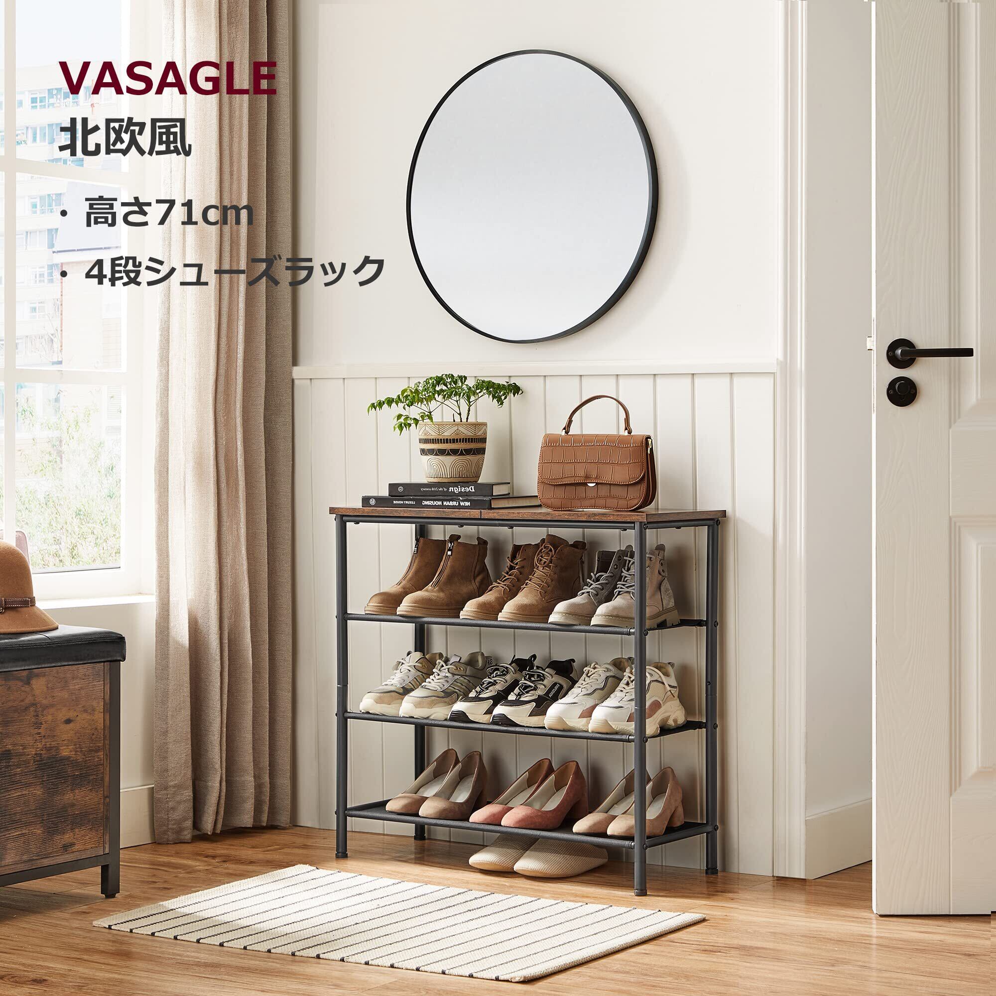 VASAGLE シューズラック 下駄箱 靴 収納 スリム 靴箱 省スペース 靴置き 靴収納 靴収納ラック おしゃれ 4段 大容量 木製 玄関収納 奥行30㎝ 高さ71cm ヴィンテージ 玄関 棚 通気性 ポリエステル布 LBS035