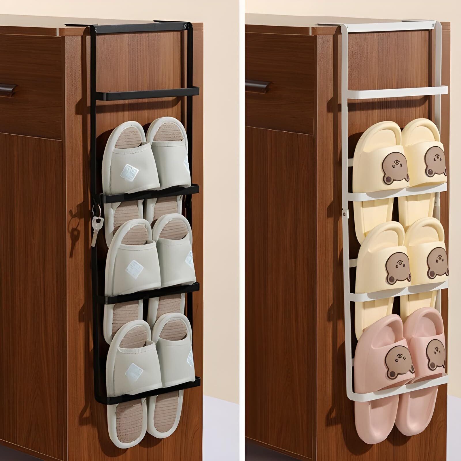 [starrycoo]スリム スリッパラック シューズラック 壁掛け 4足収納 I字構造 室内収納 玄関 下駄箱扉&引っ掛け式 靴下収納 靴棚 靴置き 便利 ラック スリッパ立て 安定性 取り付け簡単 穴開け不要 省スペース バスルーム ベランダ 浴室