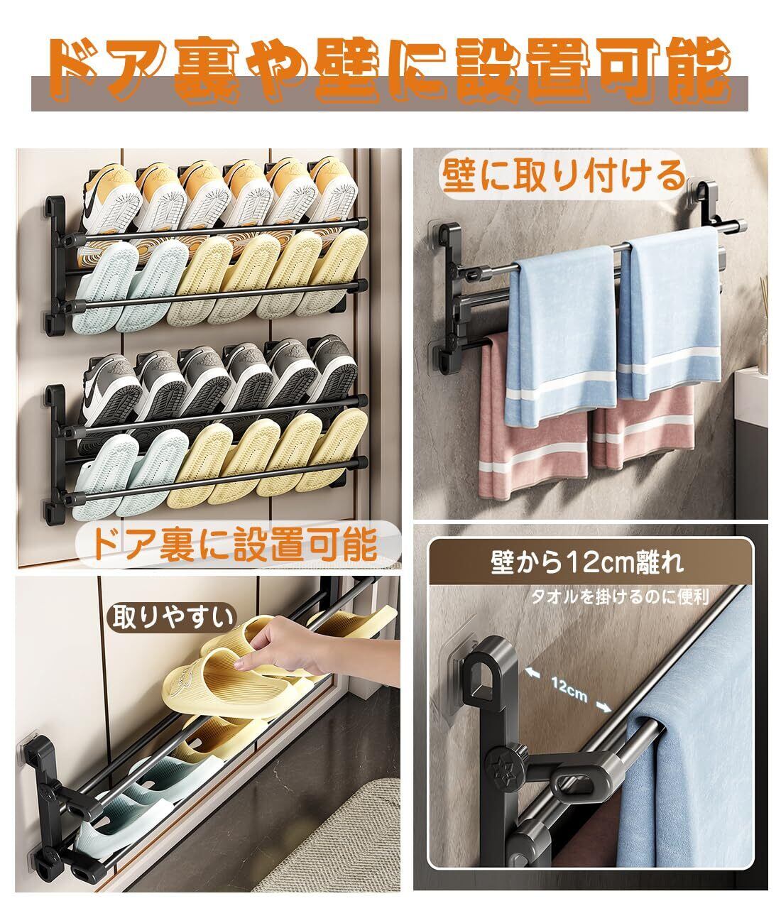 【優れた素材】スリッパラック 壁掛けは、優れた亜鉛メッキ鋼管とABS素材で作られており、防水性、防錆性、耐摩耗性、耐傷性、耐久性の利点があります。浴室に置いてもサビの心配がありません。付属の8枚の粘着シールは粘着力が強く、耐荷重性に優れており、家族の靴を簡単に収納できます。
