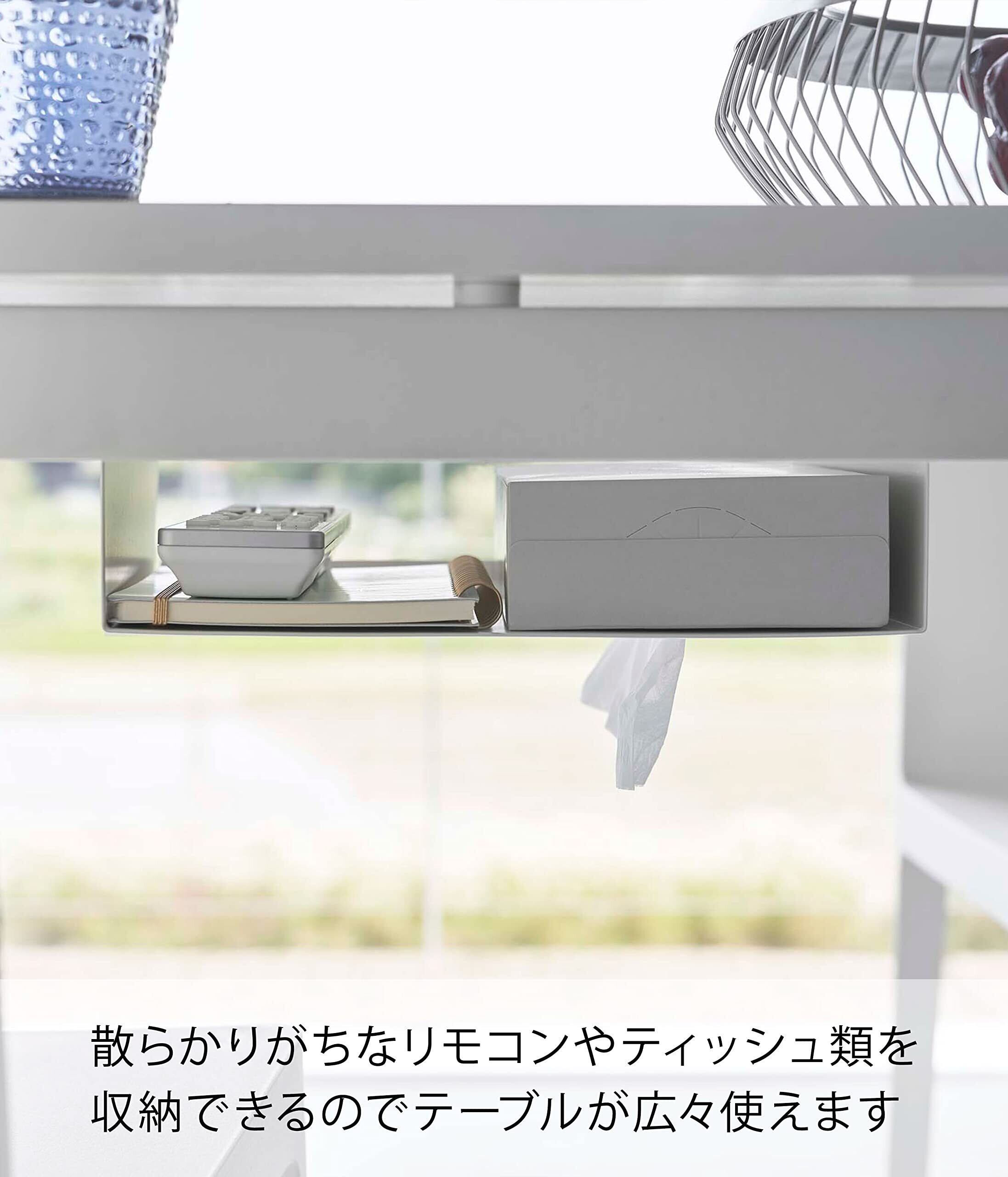 よく使うリモコンやティッシュをテーブル下に一括収納!テーブルが広々使える収納ラックです。