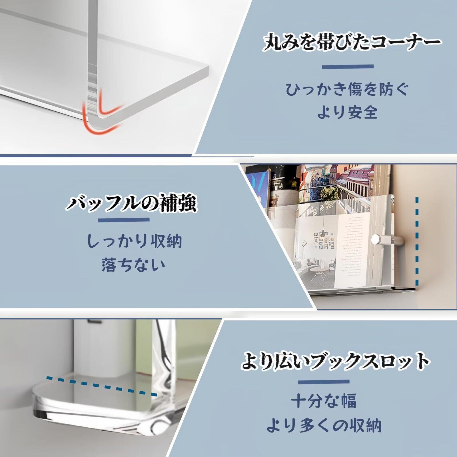 【シンプルな壁につける棚】透明アクリル材質、丈夫で防カビ性と防錆性があり、しっかりして安心感を与えます。透明ディスプレイは壁に簡単に設置でき、どんなオフィス装飾にも組み込まれています。マガジン収納やアイテム展示に便利。