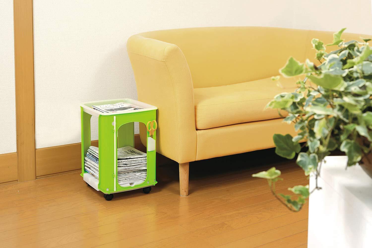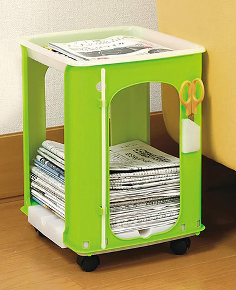 石丸合成樹脂(Ishimaru) タマハシ 新聞ストッカー 新聞ラック キャスター付き 新聞ケース 27.8×34×41.3cm 新聞紙 からふるしんぶん楽っく+1 グリーン