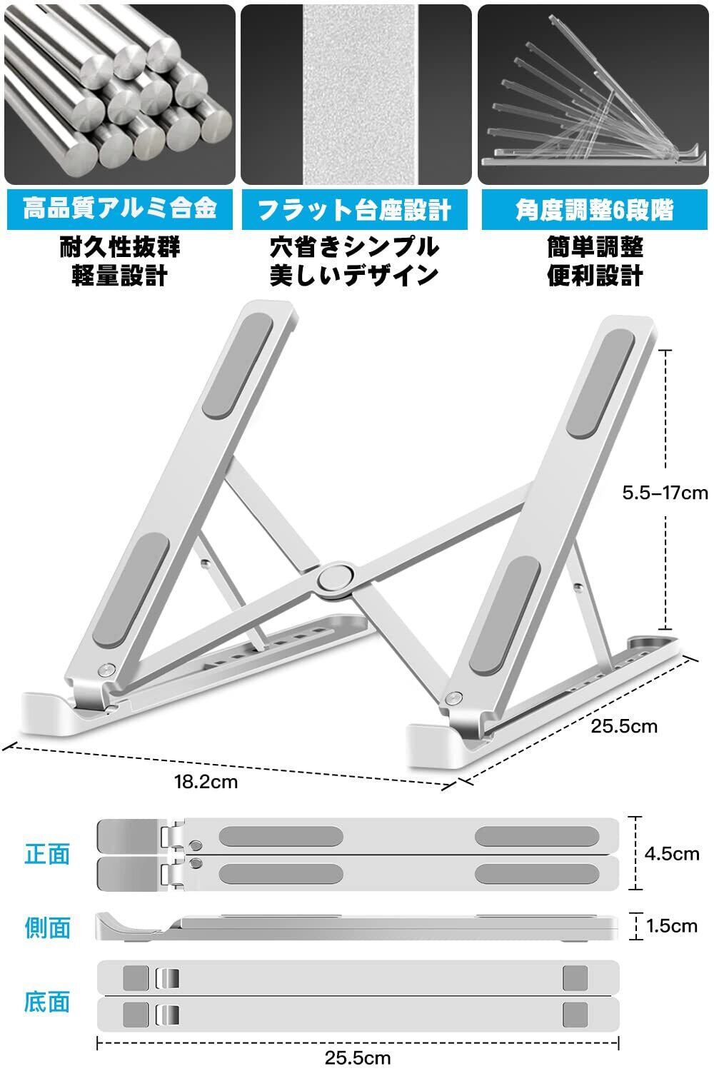 KKaMM ノートパソコンスタンド PCスタンド パソコン台 折りたたみ式 持ち運び 高さ調整可能 アルミダイカスト 人間工学 腰痛 肩こり 姿勢改善(銀)