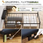 [床下収納30cm・優れる通気性]ベッド下の高さは最大30cmになるため、収納スペースとしてもたっぷりと有効活用していただけます。衣装ケースなど大きなケースや収納に困る長物類まですっぽり収納できます。このくらいの高さは掃除機の清掃もラクです。床板には空気を通すパイプワイヤー×12本を使用されますので、木製のベッドより通気製がよく、カビやダニの発生原因を根本からクリアーします。常に寝床を清潔に保ってくれます。