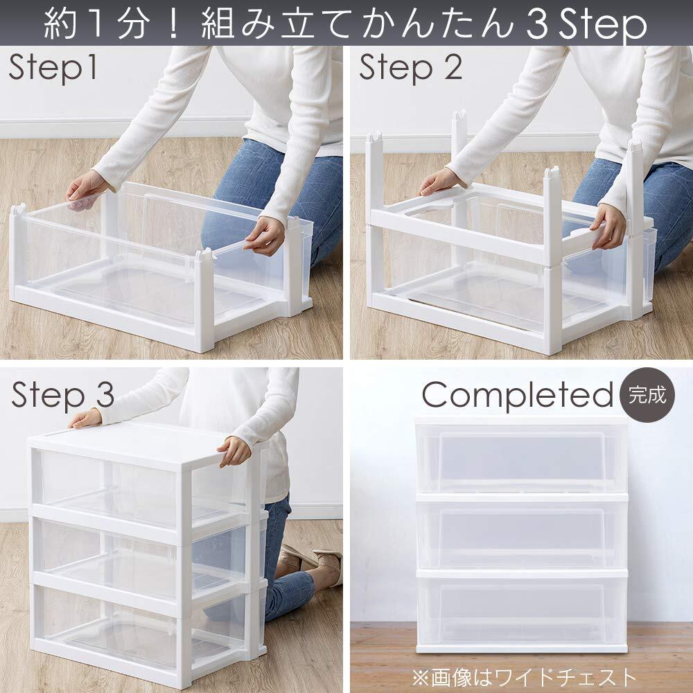 アイリスオーヤマ チェスト スリムチェスト 3段 頑丈設計(一体型フレーム) 水回りOK NSS-323 幅30.9×奥行38×高さ59㎝ ホワイト/クリア