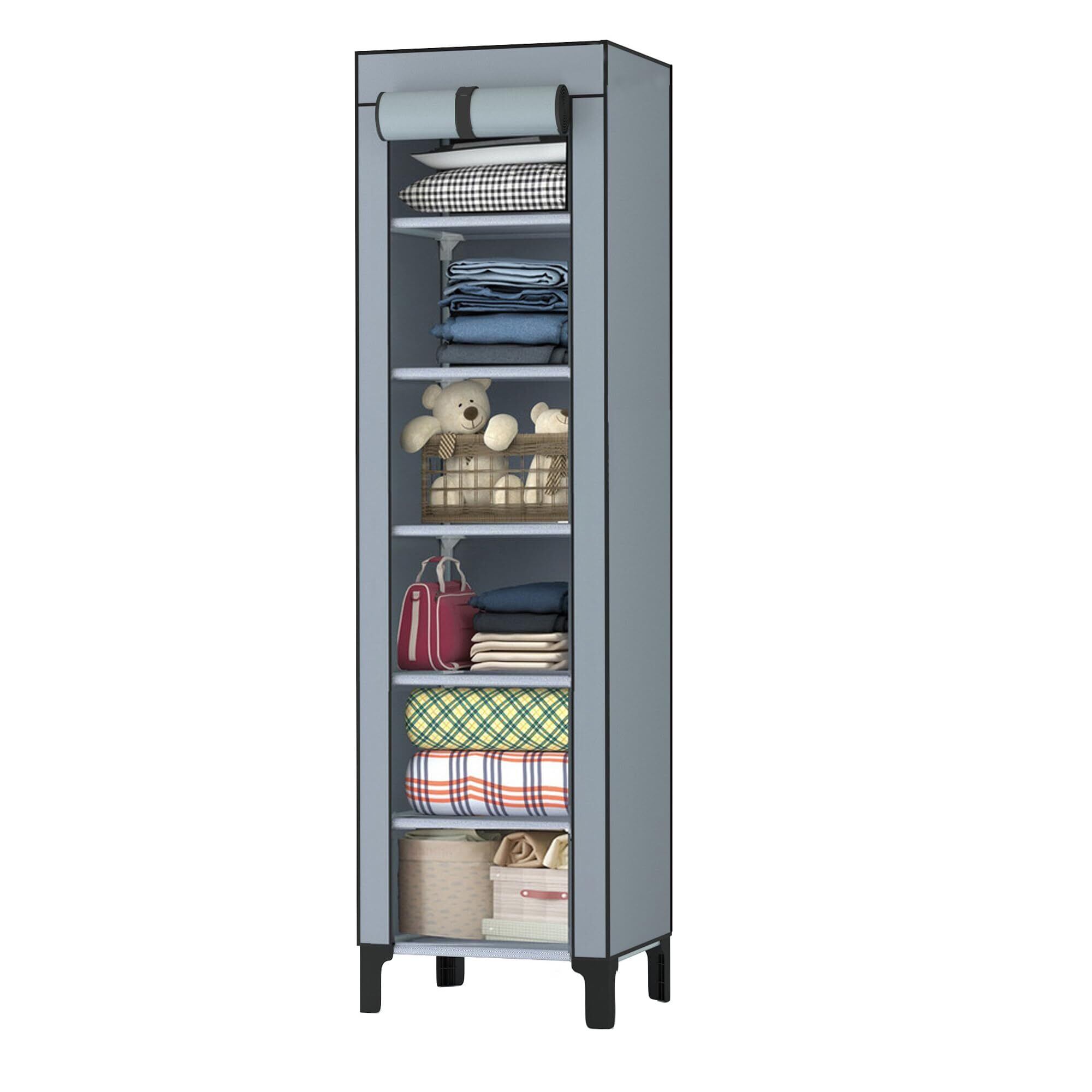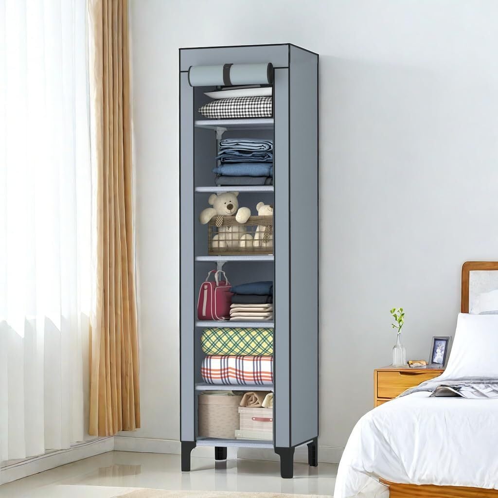 PSHUN RIGH 簡易ポータブル組立クローゼット 防湿・防塵・防カビの不織布クローゼット寮寝室服収納キャビネット多層収納整理キャビネット、簡易ワードローブ. (グレー, 45cm 幅)