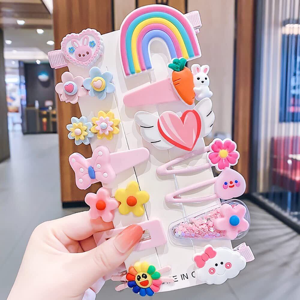 【28点豪華ヘアゴムセット】:虹、ウサギ、フラワーズ、蝶結び、ハート、雲の様々な可愛い28点セットヘアピンを含まれます。子供の中ではいろな大人気があるヘアアクセサリーを提供し、お子供が好きな一つが十分に選べます。