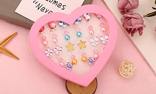 [イヤリングセット] クリップ式 耳が痛くなりにくい かわいい おもちゃ 女の子用 ピカピカ 宝石 こどもクラブ パーティー 縁日 お祭り 夏祭りに大活躍 プレゼント 混合様式 7ペア 収納ボックス付き (A)