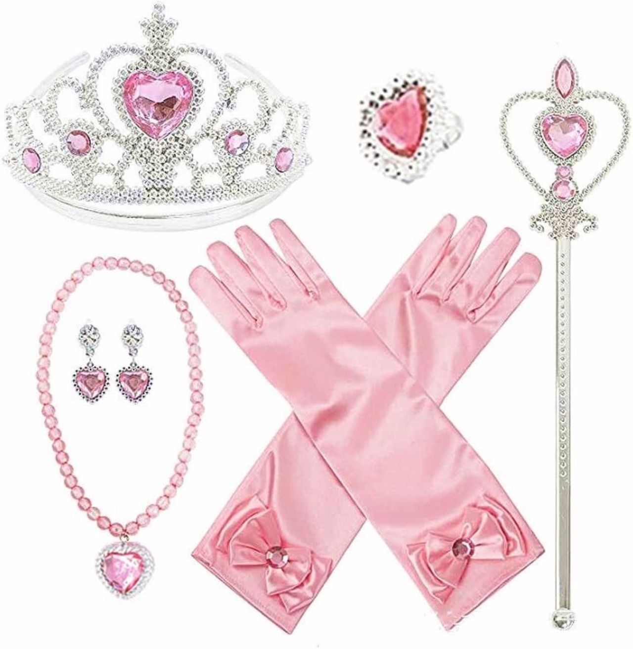 [Be-Unique] プリンセス アクセサリー おもちゃ セット ティアラ ブレスレット ネックレス スティック イヤリング リング 手袋 変身 なりきり 子供 コスチューム用小物 パーティーに最適 6点セット (ピンク)