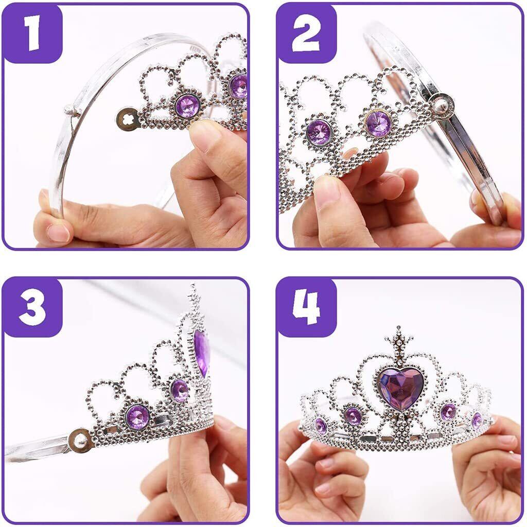 【美しさと楽しさを兼ね備えたセット!】キラキラと輝くハートのティアラや、優雅な手袋、カラフルで可愛いネックレス、リング、イヤリングが含まれています。このセットを身に着けることで、お子様はすぐにお姫様になりきり、パーティーや遊び時間がさらに特別なものに変わります。