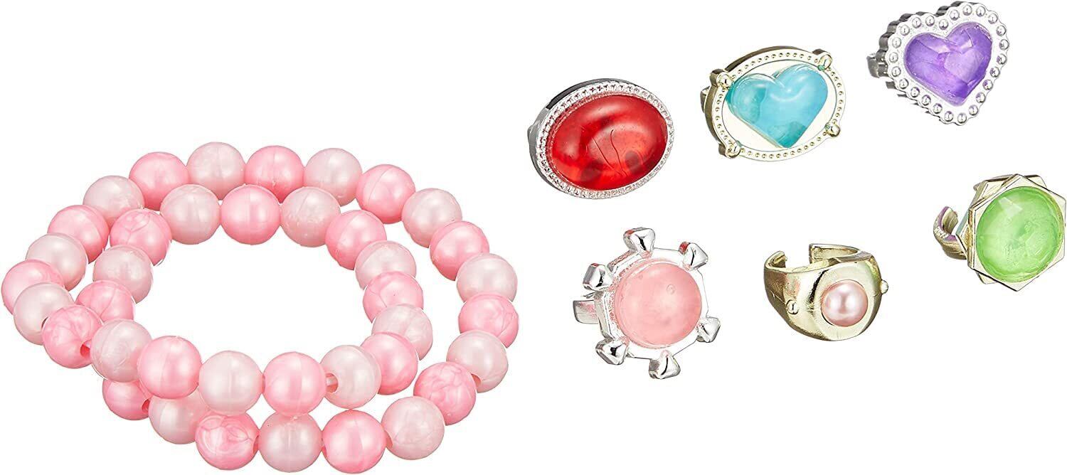 カギ付きのラメ入りケースに指輪やネックレスが入った、おしゃれなジュエルボックス。スペアキー付き。