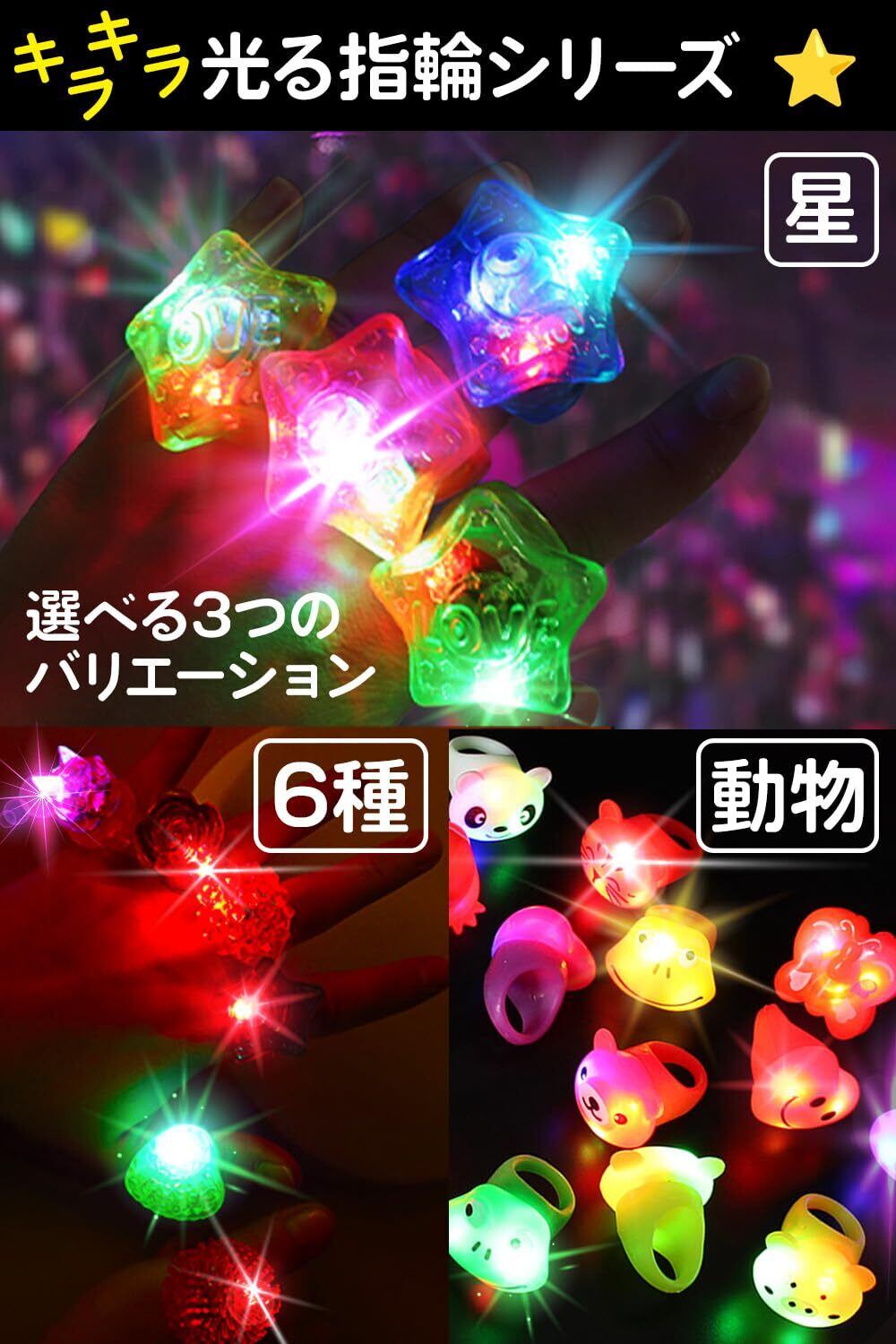 【セット内容】星型のみのセット カラー・形ランダム30個(※カラー、形指定不可)、箱付き 【材質】指輪本体:TPR 、ボタン電池(交換不可) 【対象】男女兼用、6歳以上推奨 【その他仕様】点灯時間: 約48ー72時間(※個体差があります)