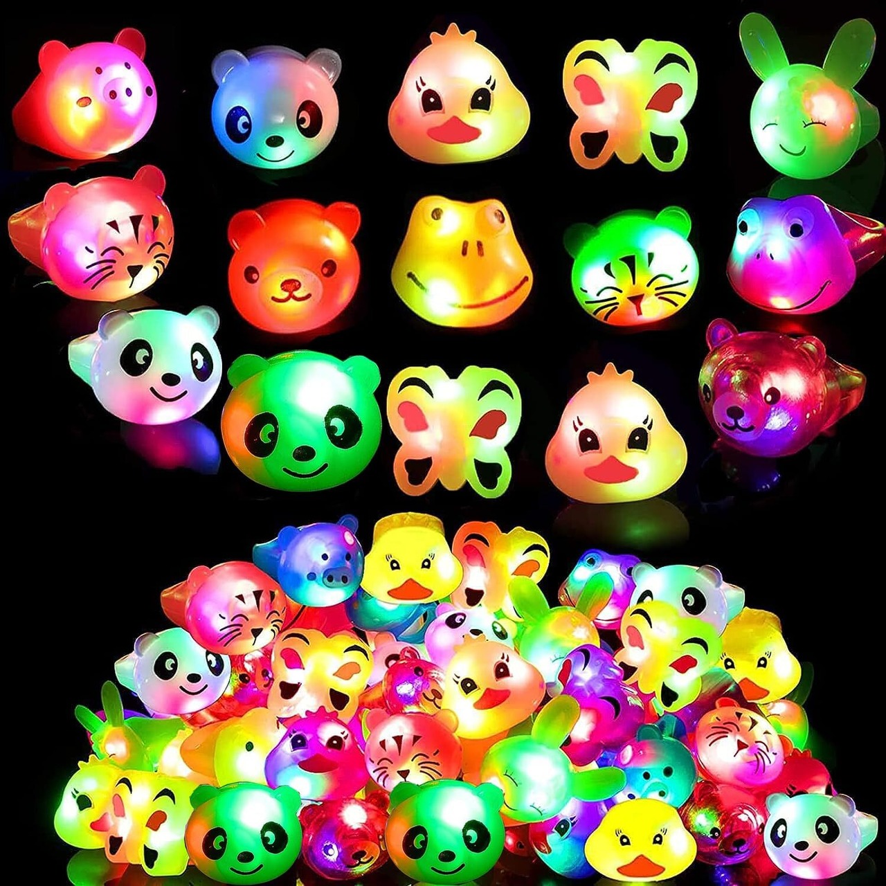 【楽しいデザインがいっぱい!】全27個の光る指輪には、野生動物やペットのデザインが含まれており、子供たちがワクワクすること間違いなし!それぞれのデザインがランダムに入っているので、開ける楽しみも倍増します。