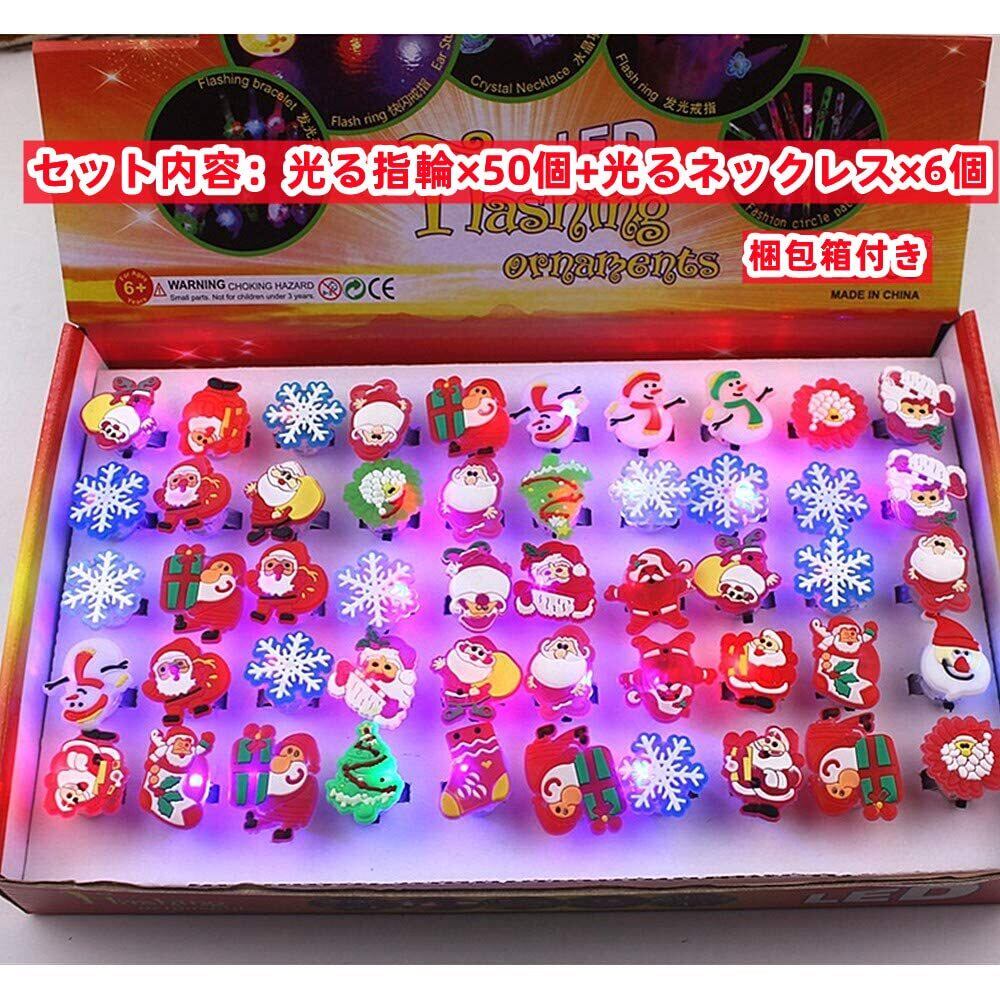 光る指輪クリスマス 光るおもちゃ 56点豪華セット( Led光るネックレス*6+ 指輪*50)お祭り子供景品 縁日おもちゃ 文化祭 子供会 花火大会ハロウィン クリスマス新年会 誕生日プレゼント キラキラリング ピカピカ 光るリング 子供・大人対応可 クリスマスグッズ クリスマス 飾り 飾り付け 装飾
