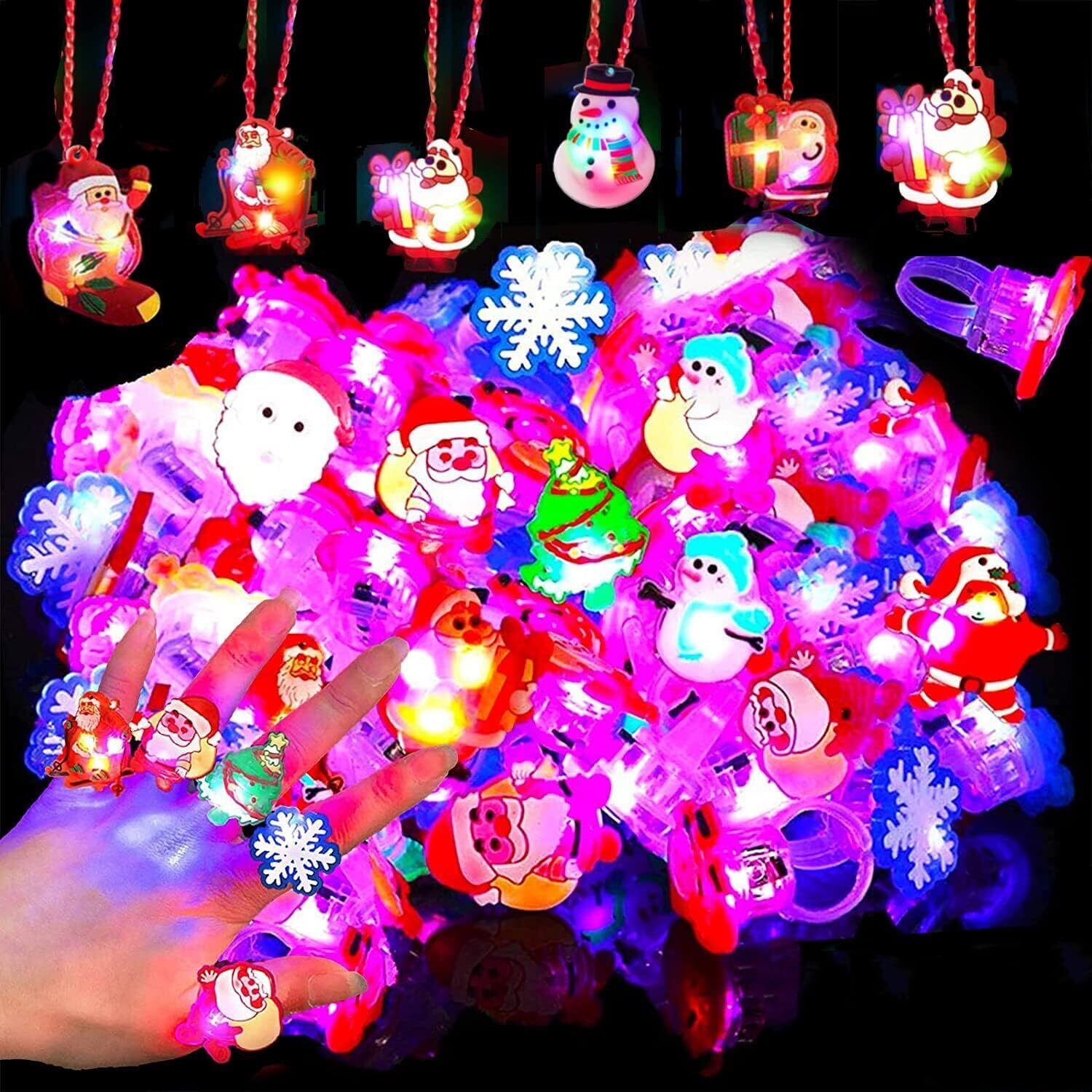 ?? 【大容量クリスマスおもちゃセット】:光る指輪×50個、光るネックレス×6個。合計56点豪華セットです。クリスマスプレゼント、誕生日プレゼント、その他のホリデーギフトに最適です。お子様は、ライトアップリングの詰め合わせを家に持ち帰るのが楽しくなります※注:色柄はアソート(混合)になります。指定はできません。