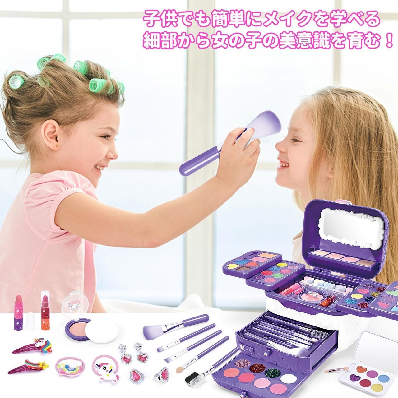 【安全に遊べる設計!】こちらのメイクセットは、全てのアイテムが子供の肌に優しい無害な素材で作られています。水で簡単に落とせるため、衣服や家具を汚す心配もなく安心して遊べます。親御さんも安心してお子様に与えられる設計です。