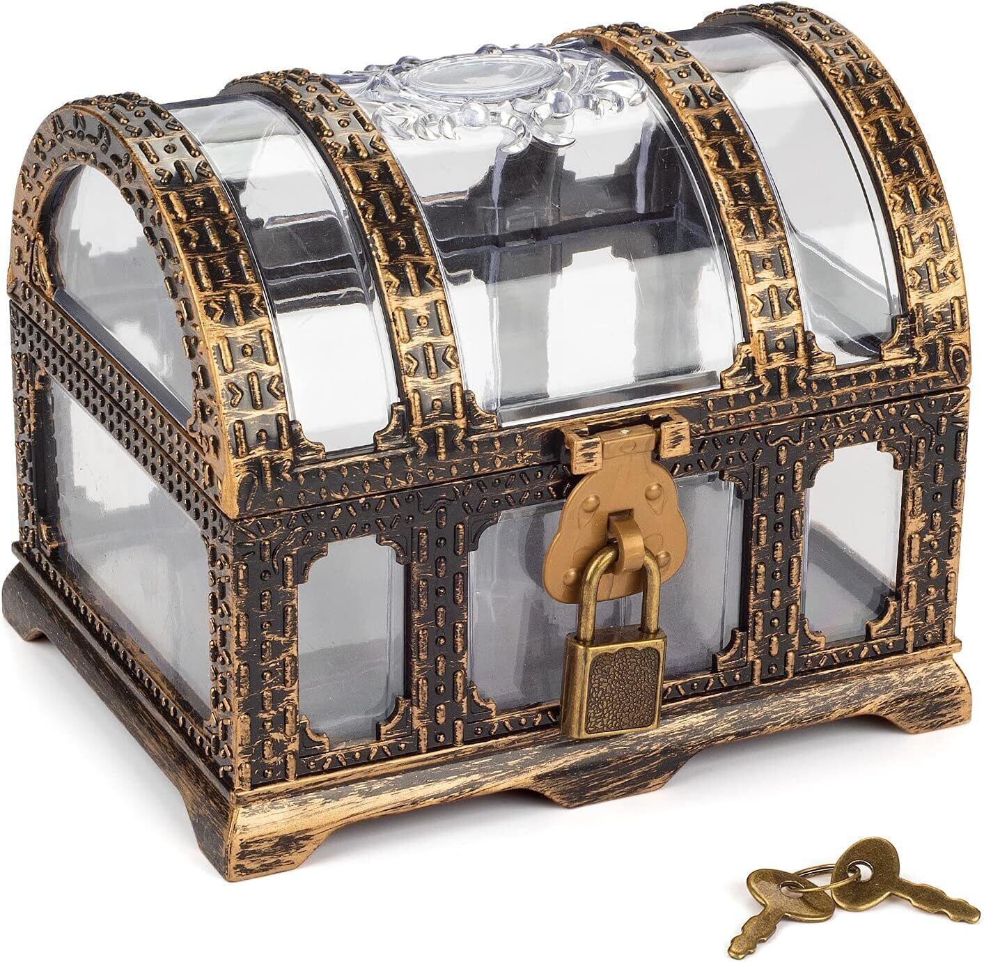 海賊の宝箱 おもちゃ箱 鍵付き レトロ アンティーク風 トレジャーボックス パイレーツ 財宝 お宝 宝石箱 小物入れ 金貨 秘宝 収納ボックス インテリア飾り 雑貨 置物 おもちゃ 子供用 宝箱
