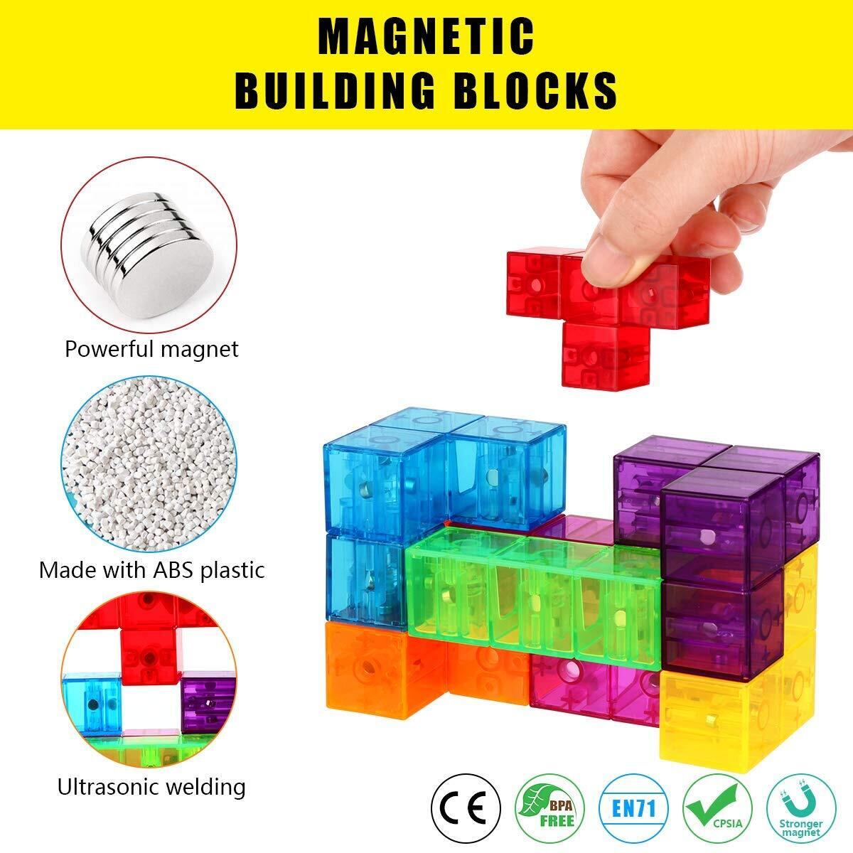 永久に遊べるパズル ブロック 7パーツセット 磁石 おもちゃ 遊べるマグネット 立体パズル 知育玩具 カラフル磁石積み木 創造力 賢人パズル対応 (クリアカラー)