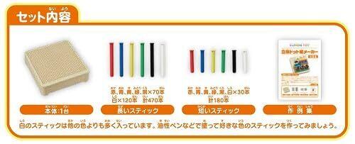 対象年齢:5歳~ / セット内容:本体×1個・長いスティック×470本(赤・青・黄・緑・黒各70本/白120本)・短いスティック×180本(赤・青・黄・緑・黒・白各30本)・作例集×1部