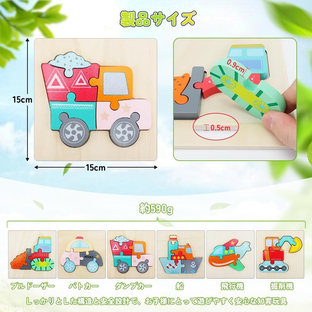 モンテッソーリ 知育玩具 木製パズル - 木のおもちゃ 6個セット かわいい 色認知 指先訓練 知育 形合わせ 幼児用 乗り物パズル モンテッソーリ 赤ちゃん 知育玩具 1歳 2歳 3歳