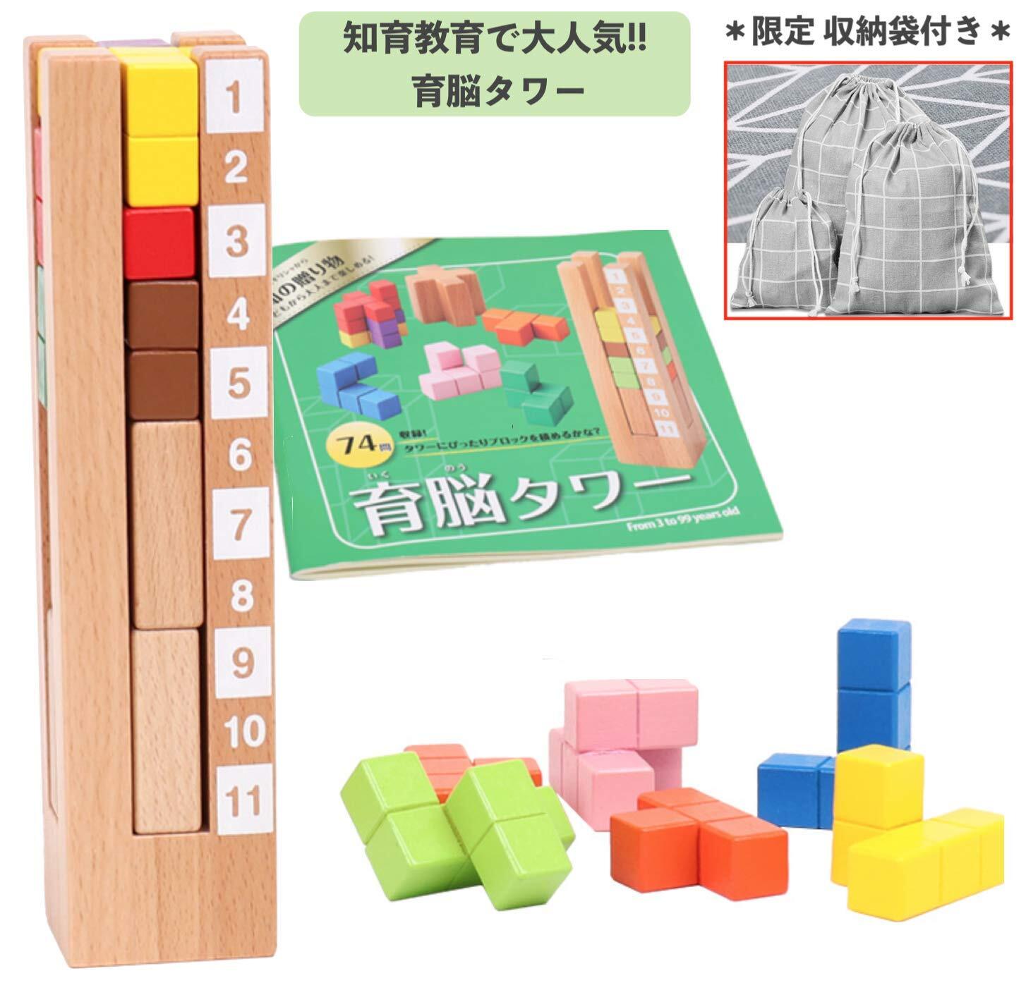 (Ed.inter/エド・インター) 知の贈り物シリーズ 育脳タワー 知育玩具 子供 知育 玩具 積み木 木製 タワー 図形 立体 ブロック パズル 子ども キッズ おもちゃ 知育教育 頭脳教育 モンテッソーリ教具 正規品 オリジナル 収納袋 書 付き
