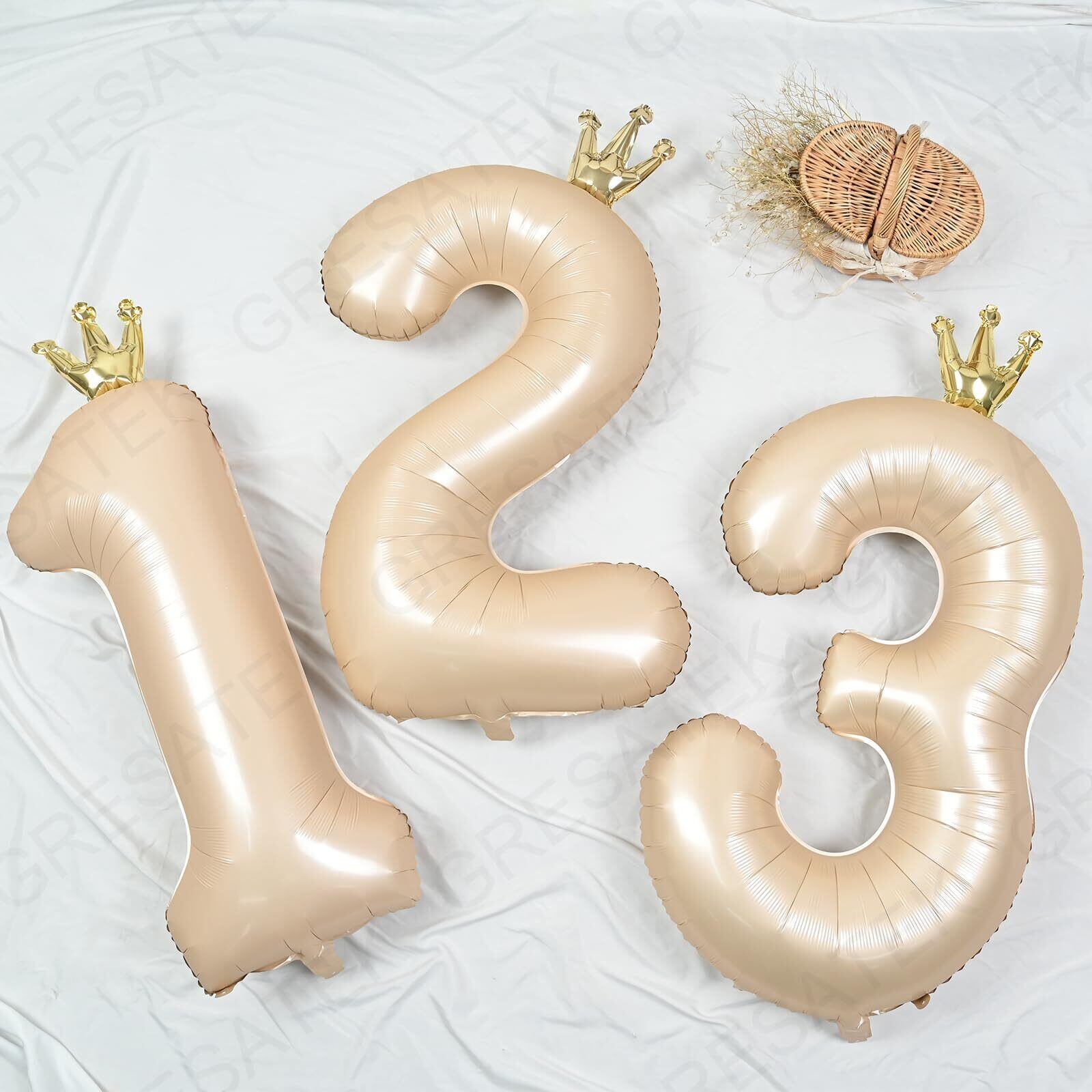 GRESATEK バルーン 数字 風船 誕生日 40インチ 大きい ナンバー2 バースデーバルーン 王冠付き クラウン 飾り付け 結婚式 パーティー 記念日 ウェディング キャラメル