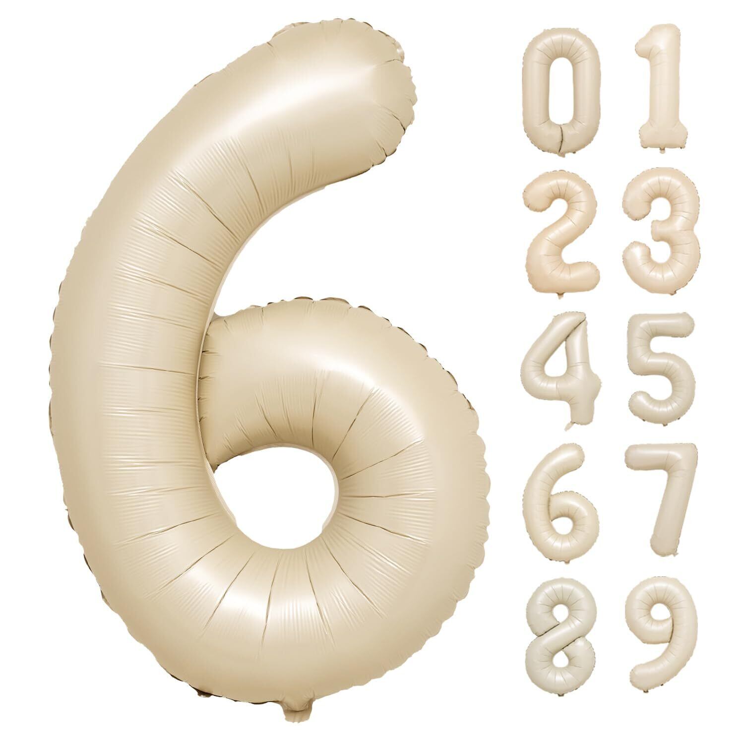 数字バルーン 大きい 誕生日バルーン 飾り付け 風船 約100cm バースデーバルーン (数字6, マットアイボリー)