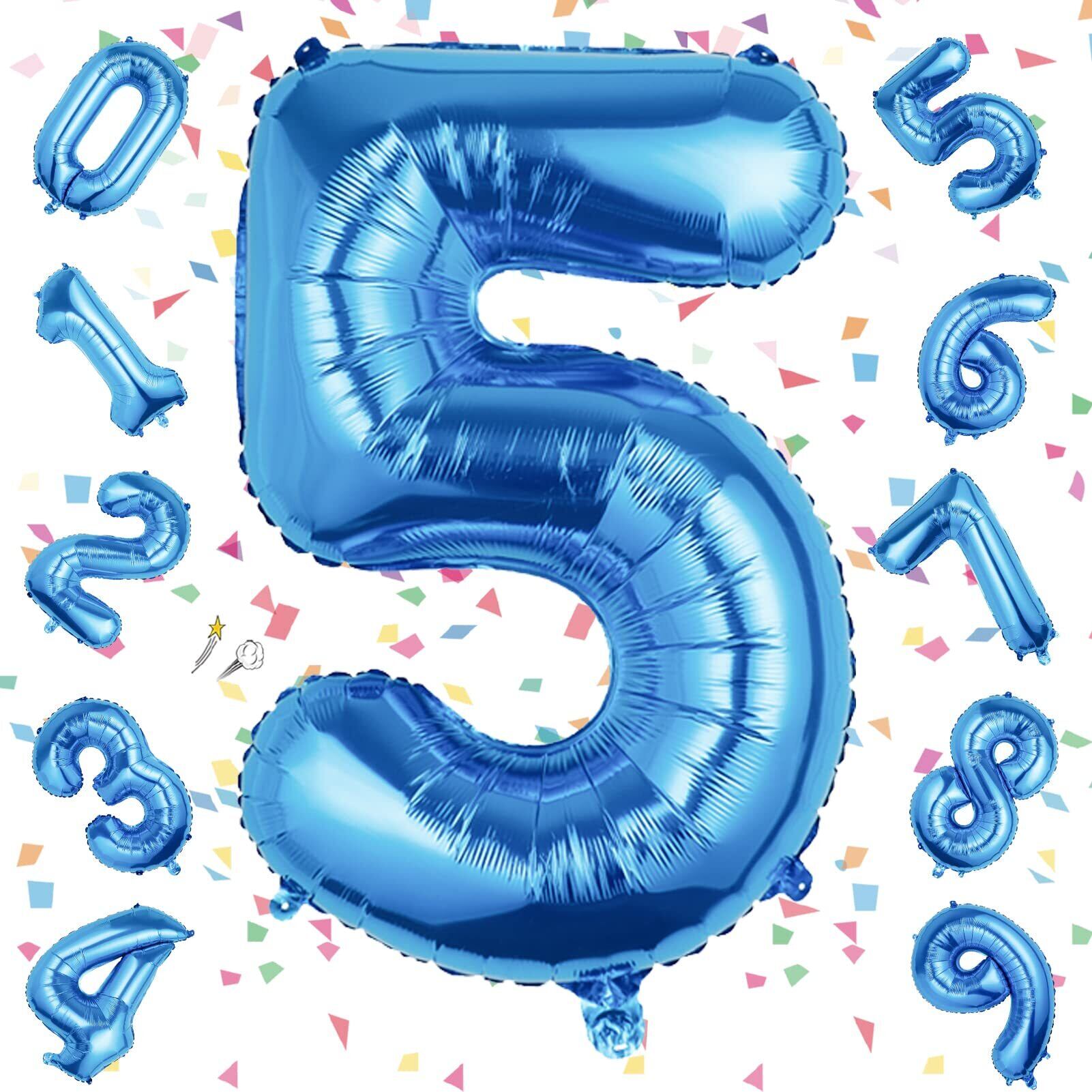 EXGOX 数字 バルーン 大きい ブルー 誕生日 ナンバー 5 アルミ風船 32インチ ハッピーバースデー パーティー 成人式 入学 卒業式 記念日 お祝い 飾り付け